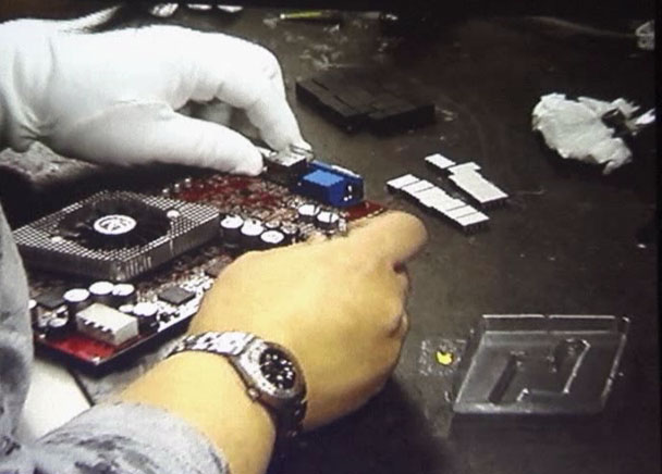 | RADEON 9800発表会では,同チップの製造中の映像をビデオで流した。いうまでもなく,発表から4か月経っても製品が出荷されなかったGeForce FXに対する当てつけだ |