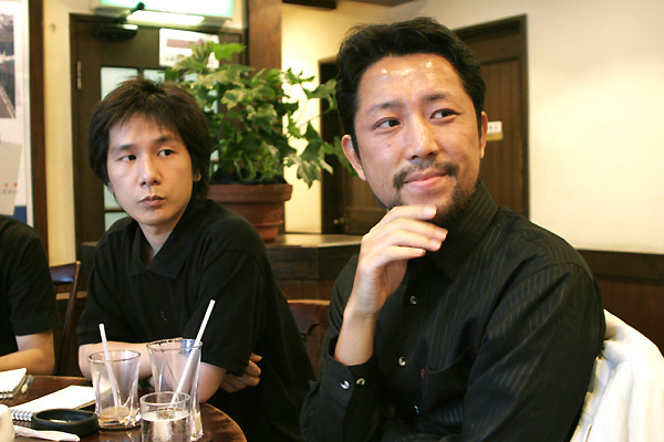 ご存じ,キム・ハッキュ氏(右)。「ラグナロクオンライン」の開発者として,世界的な有名人である。以前のインタビューでお伝えした氏のラーメン好きは相変わらずのようで,このインタビューが終わってからファン主催のオフ会に乱入するまでのわずかな時間に「九州じゃんがら」へ行った模様。しかも全部入りで替え玉。ちなみに左は,通訳をしていただいたHUEのソ・ジョンソブ氏