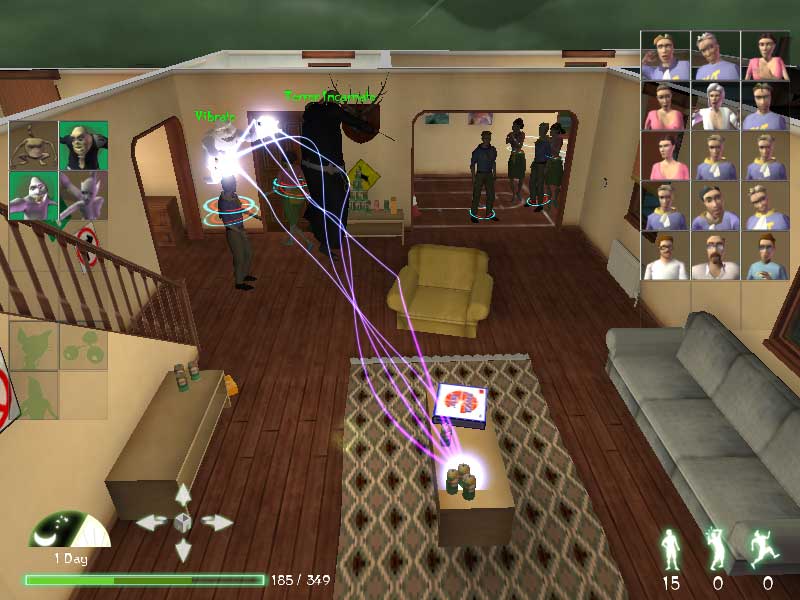 カメラ視点は「シムピープル」をズームアップで見ている感じで,人間達の行動が逐一把握できる。人間達を驚かし,その結果彼らが取る行動をうまく利用してミッションを遂行していくのが斬新で,頭を使ったパズル性の高いゲームに仕上がりそうだ。