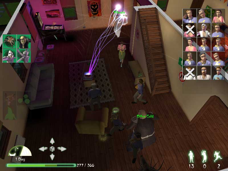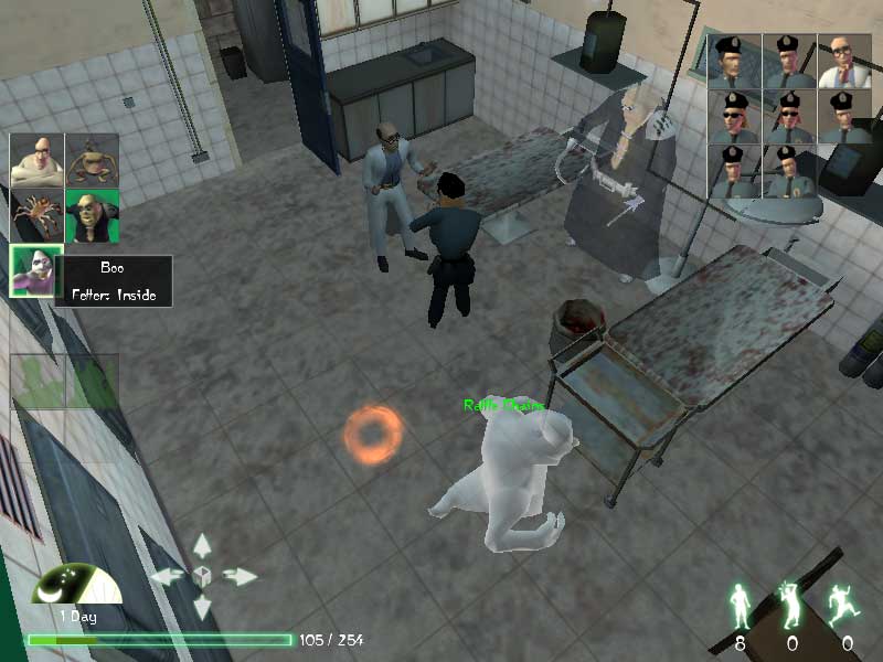 ただし自動選択の場合では,ボーナスや隠しキャラクターがうまく見つけられない可能性があるので,どちらを選ぶかはプレイヤー次第ですね。Ghost Masterには,同じレベルでも違うハウンターの組み合わせでクリアするという楽しみもあるんです。ハウンター達はバラエティに富んだ能力を持っていますから,どの場面でどのハウンターを使えばいいかを結構簡単に習得できるはずですよ。