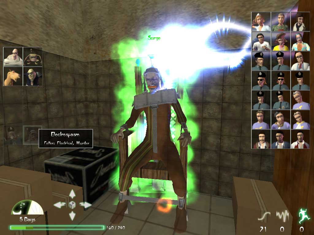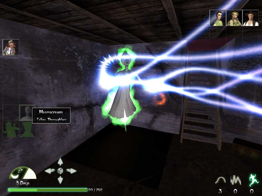 これは「死霊のはらわた」に出てきそうな,山小屋の地下室か何かだろうか。人間は三人なのに,すでに5日が経過している。かなり手強いミッションのようだ |