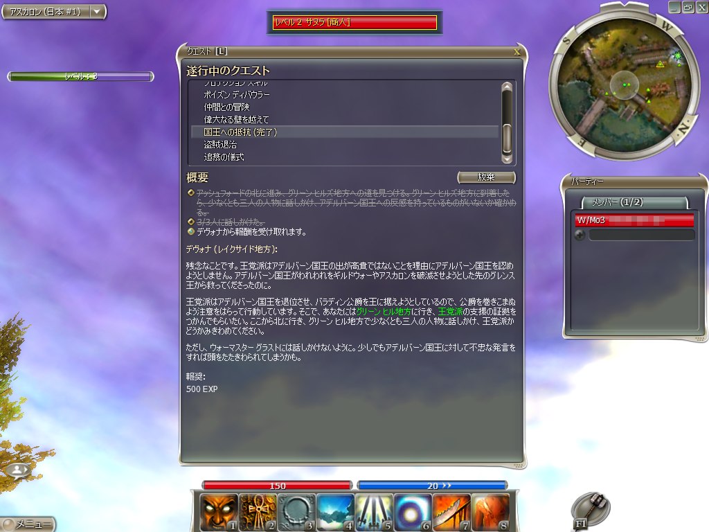 クエストは,ミッションに直接関係ないエリアへ誘導するという意味もあるようで,クエストをクリアしていくだけでティリア全土を訪れられるようになっている。このクエストの報酬には,スキルが習得できるものもあるので,少しずつクリアしながら進むのがよい。スキル獲得のペースはそれなり速く,プレイ開始から数時間で,8個あるスロットに入りきらなくなってしまう。よって,このあたりからスキル構成を選ぶ必要が生じ,キャラクターの個性が芽生えてくるというわけだ。