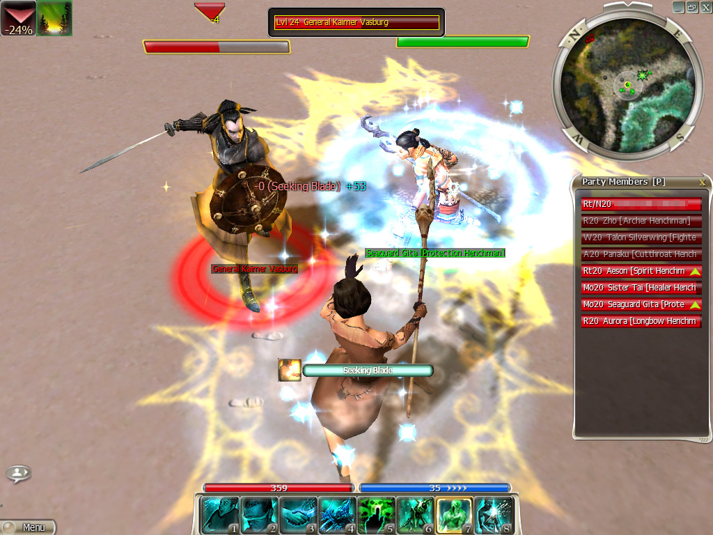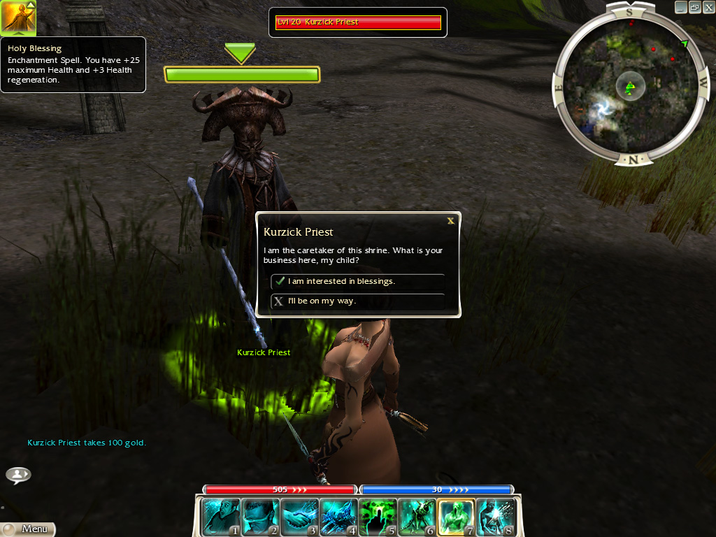 拒絶されたNPCに対しては,勢力システムの理念に則り,殺してしまうことも可能。写真は賄賂で一時的に懐柔し,補助魔法を掛けてもらったところ |