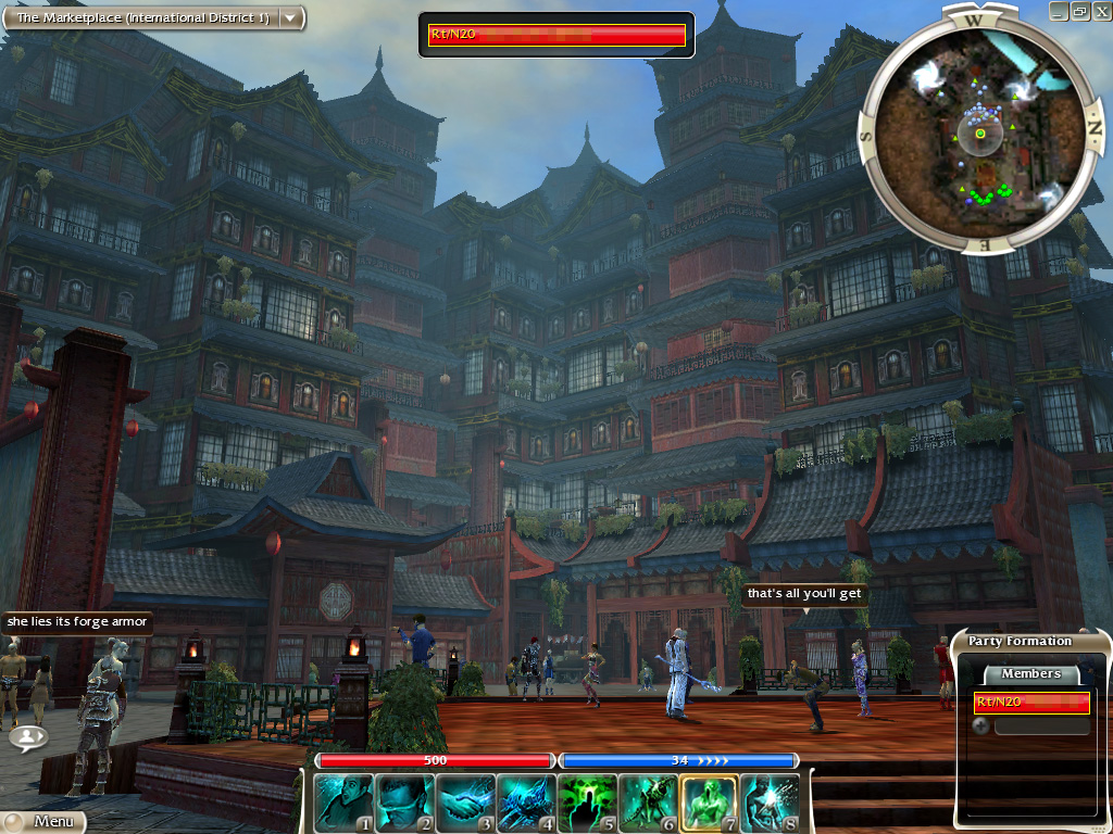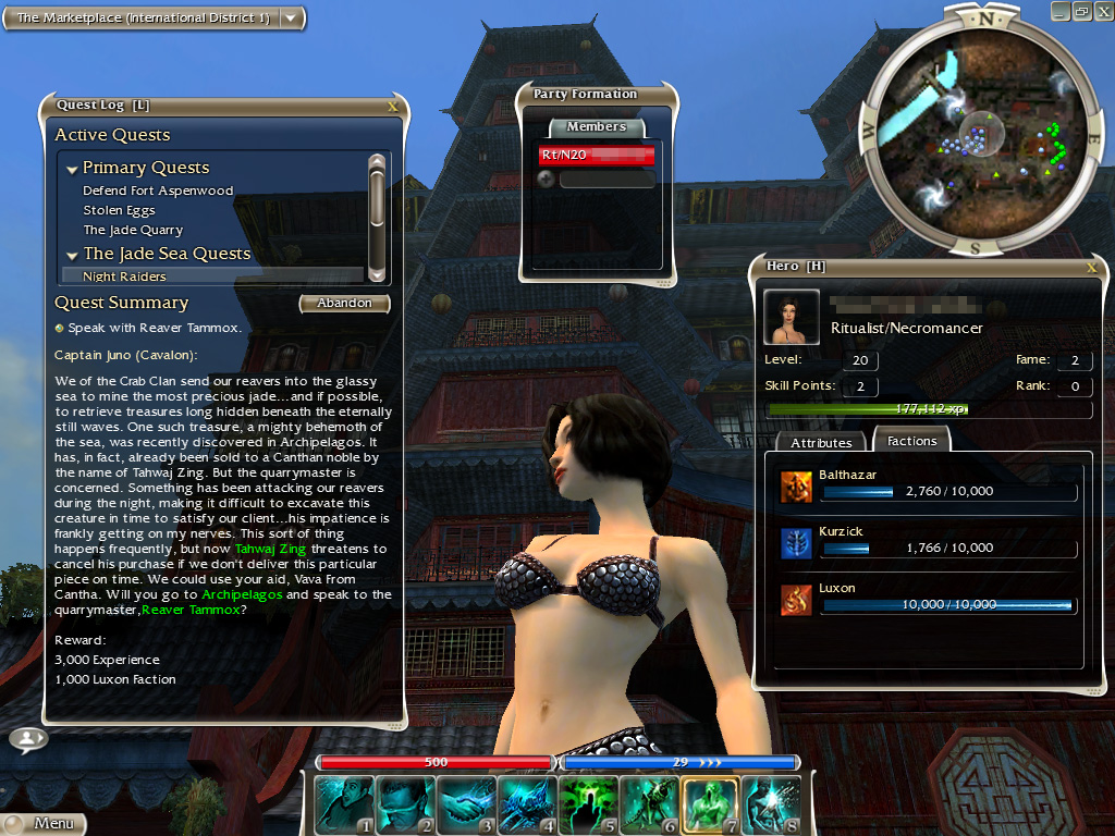 実際にキャンサ帝国の都市に降り立って,まず驚いたのは,その景観であった。見上げるばかりの巨大な東洋風の建築物が,ひしめくように建ち並ぶ様は,まさに圧巻である。そのほか,NPCの衣装なども含めた全体的な印象としては,異世界の新鮮さを感じさせながらも,それでいてギルドウォーズらしいと思えた。オリエンタル要素の導入はCampaign2のポイントの一つだが,これは思いのほかうまくいっている印象だ。