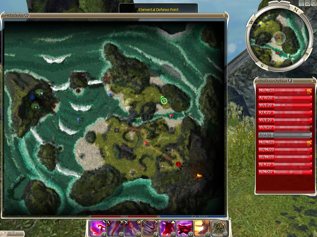 同盟バトルでは参加人数が多いことから,ほかのモードにはないノウハウも求められる。この追求も醍醐味の一つ。例えば戦略地点に固まっている敵に対しては,エレメンタリストの範囲魔法が大いに活躍する。大量の死体が打ち棄てられる性質のため,ネクロマンサーは思う存分にゾンビペットを生み出せる。とはいえ,これらのゾンビ達も,サイクロンアックスといった範囲攻撃には一撃で粉砕されてしまう,というわけだ。3日間のイベント中だけでも,今までの対人戦では想像もつかなかった戦術をいくつも目の当たりにし,プレイ中は驚きと興奮の連続であった。