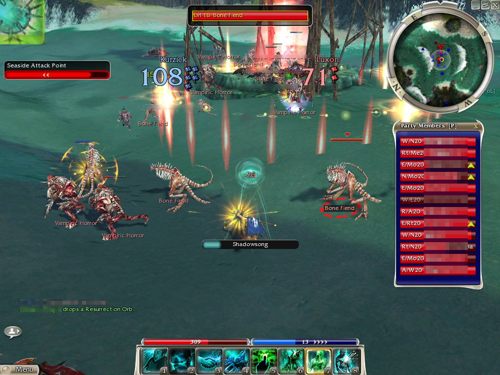 そのほかの重要点としては,仮に死亡しても短時間で蘇り,デスペナルティもないことが挙げられる。よって蘇生や回復系のスキル,すなわちモンクの比重がやや落ちている。従来の対人戦ではモンクは必須といえる存在だったものの,同盟バトルでは極端な話,アサシンが4名という構成でも分隊活躍を行える。ジョブ構成をある程度自由に行えるのは嬉しいところだ。