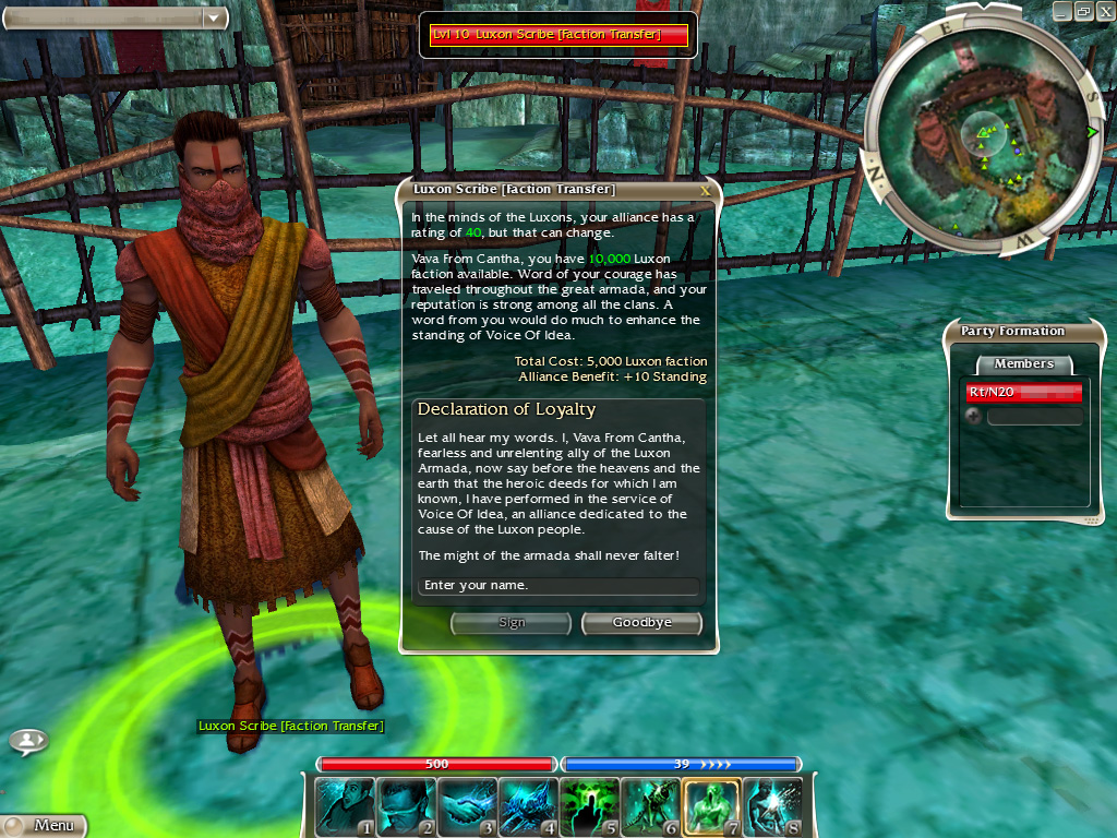 報酬用のパラメータは,キャラクターではなくアカウント単位で共通となっている。そしてユニークなのは,どちらかの勢力に深く関わっているプレイヤーは,その一員とみなされ,さまざまな恩恵を受けられるものの,敵対勢力からは拒絶されてしまうこと。今回のイベントで筆者はラクソンと深く関わってみたが,この状態でカーツの勢力下へ行っても,例えばNPCの商人がアイテムを売ってくれないのだ。これは喩えるならば,「EverQuest II」におけるケイノス,フリーポートの間柄に比較的近い。