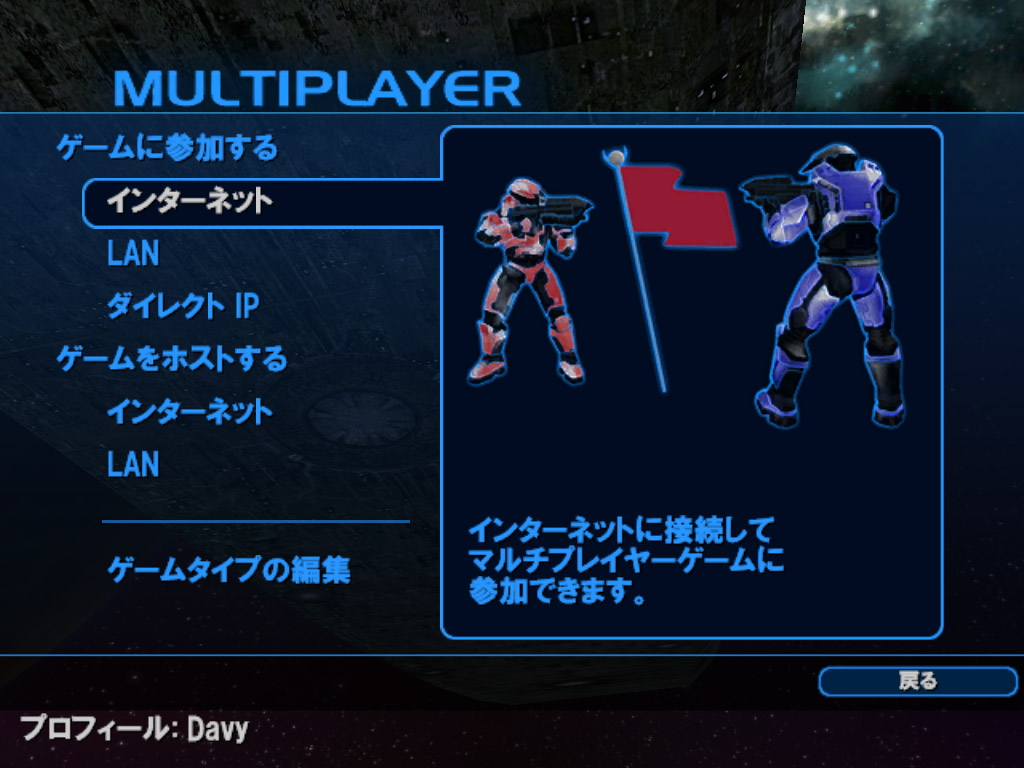 | MULTIPLAYER画面。予習用のホストとなる場合は「ゲームをホストする」の「LAN」を,ゲームタイプを選択したい場合は「ゲームタイプの編集」を選択 |