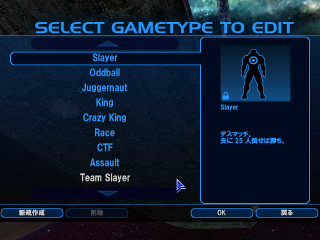 同様に,各種ゲームタイプのルールを知りたい場合は,「MULTIPLAYER」画面で「ゲームタイプの編集」を選択し,「SELECT GAMETYPE