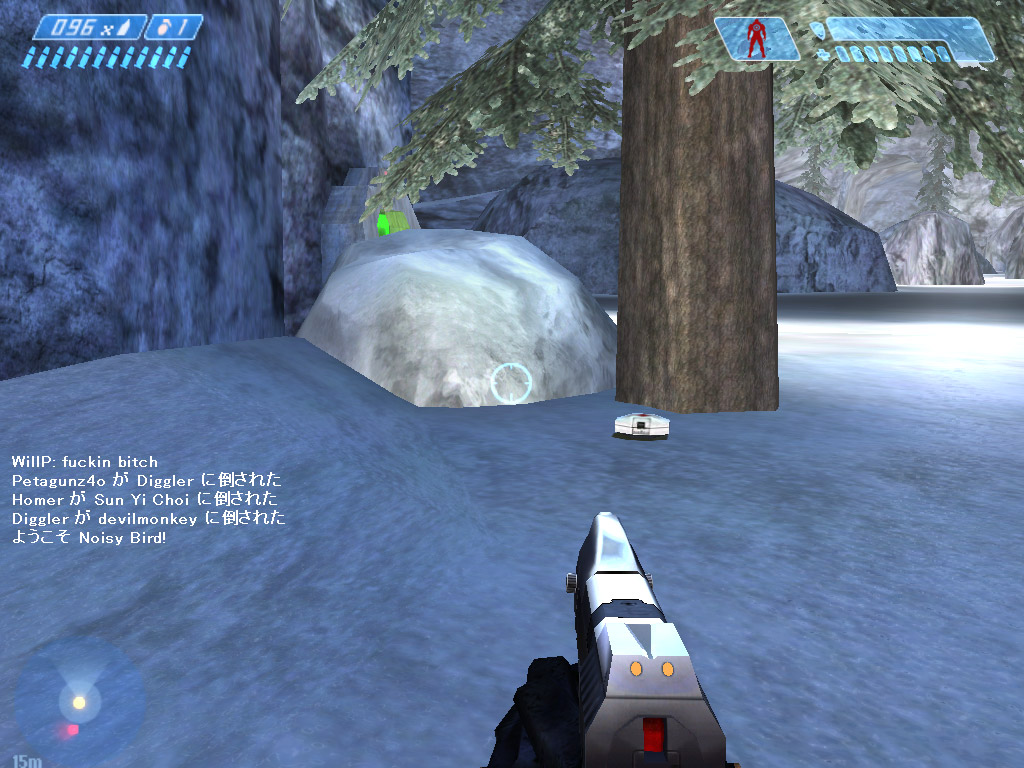 | 屋外ステージでは,高所に陣取ったプレイヤーが,スナイパーライフルで容赦なく遠距離狙撃をしてくることが多々ある。周囲に敵がいないからとノンビリしてはいけない |