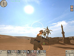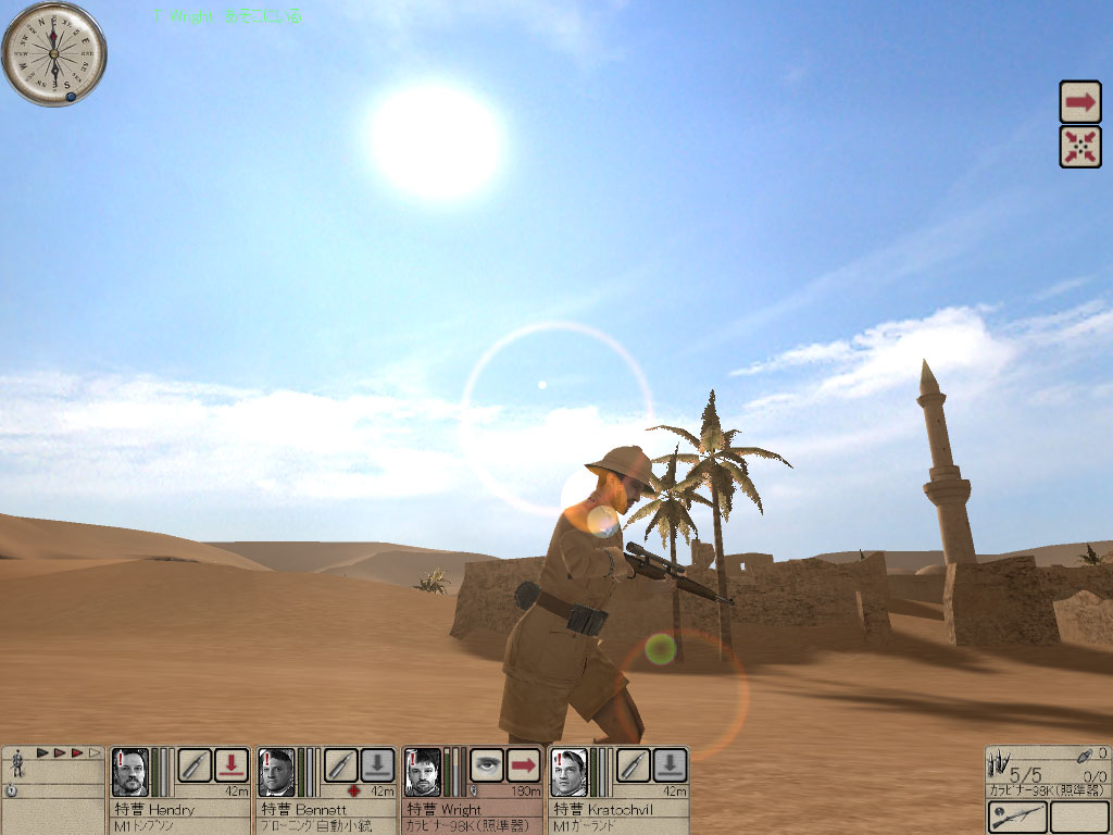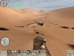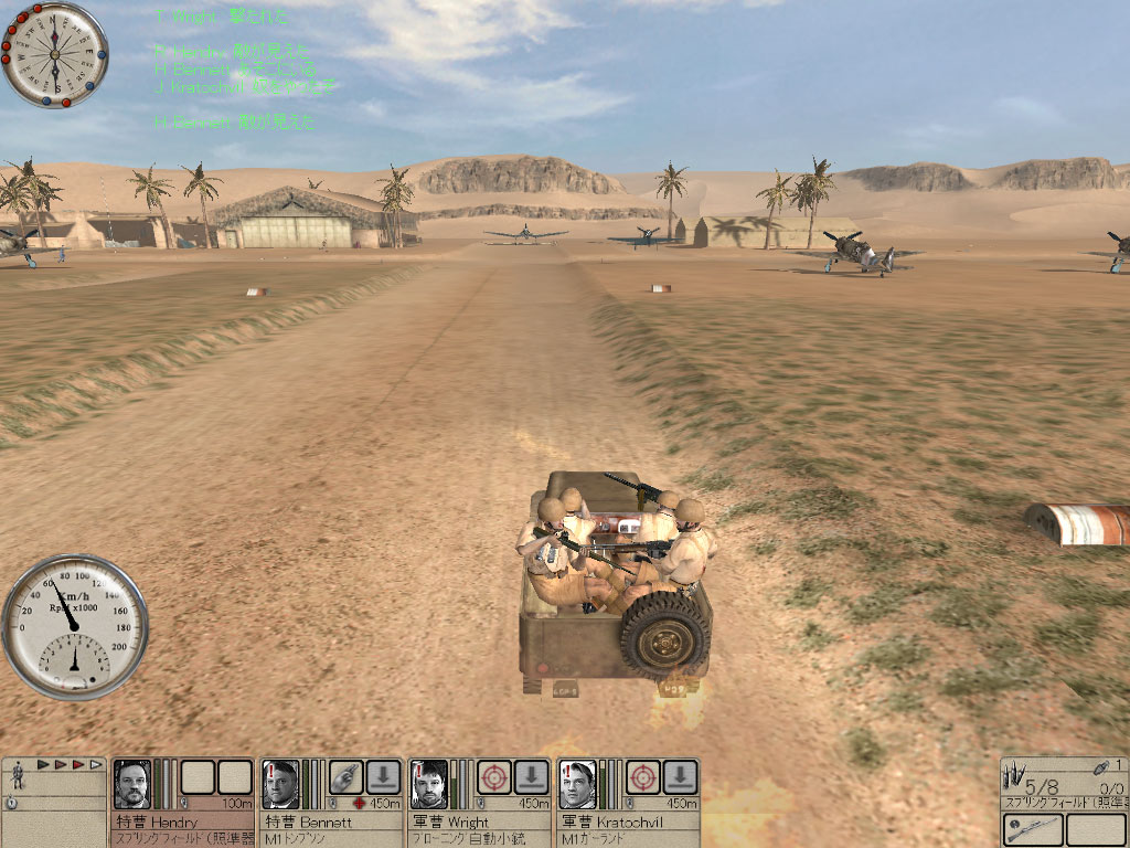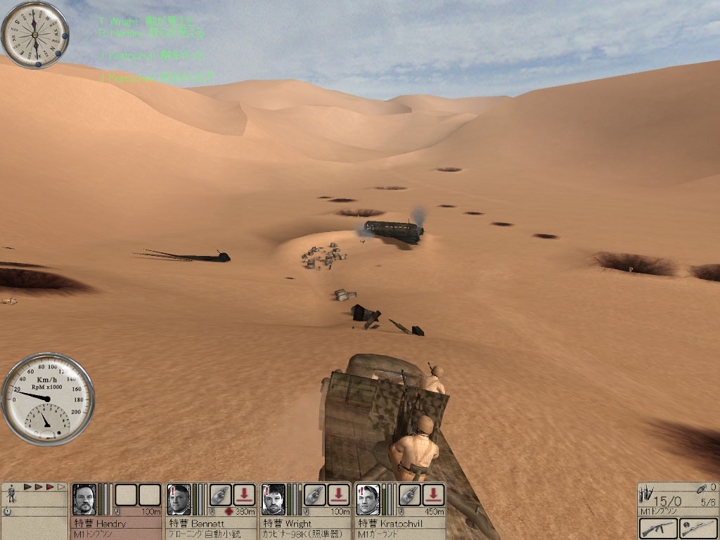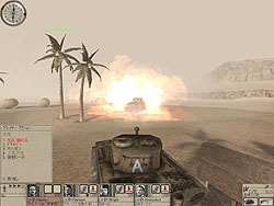 ![]() 「ヒドゥン&デンジャラス2」中,最長の6ミッションで構成されるキャンペーン「ノーマッド作戦」。北アフリカが舞台で,そのほとんどが砂漠だ。ドイツ軍とイタリア軍が登場する。北アフリカ戦線というと,ロンメル機甲師団に代表される「戦車戦」のイメージがあるだろうが,キャンペーン2では敵戦車が次から次へと登場する。対装甲車対策が必要になるが,中でもオススメなのが「爆弾」だ。ストレートな名前が魅力的なこの爆弾は,戦車に直接くっつけて爆発させるという,実にストレートな兵器。終盤近くまで役に立つので,全部持っていこう。ブローニング自動小銃(BAR)も大変オススメ。