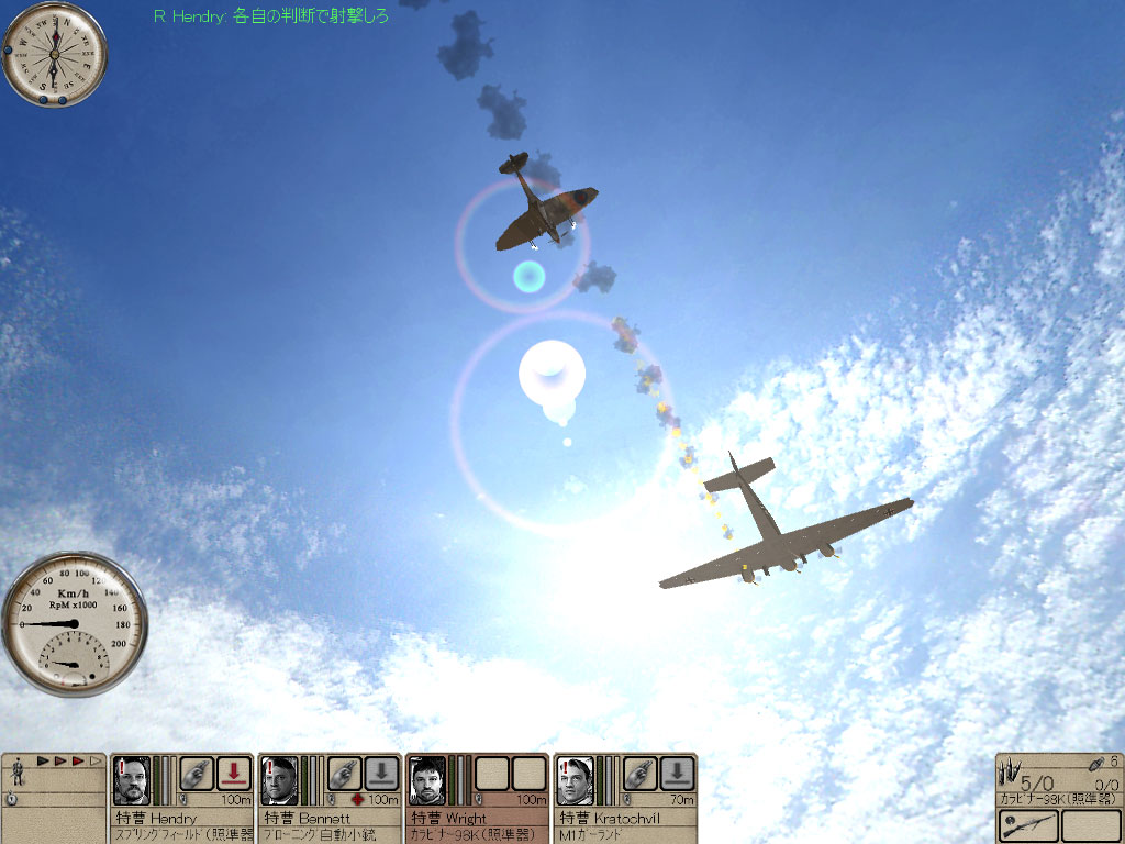 2機の敵機は,ただちに撃ち落したほうがいい。まずは誰か一人が車両から降りる。すると敵機は低空飛行をしながら機銃掃射してくるので,このチャンスを狙って銃撃。こいつら,なんとトンプソンやM1ガーランドでも撃ち落とせるのだ。