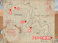 (う)には,墜ちたてホヤホヤな大型機の残骸がある。おそらくは先ほど,煙を吹きながら頭上を通過していった機の成れの果てだろう。先のオプション目標「敵は援軍を要請することができなかった」を達成していない場合,(え)からトラックに乗った敵の増援が現れるので注意。