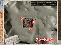 (あ)は,このオアシスの中心となるモスク。ここには通信機があり,医者がいる。この医者は殺してもミッション失敗にはならないが,少しも得策ではない。また,この中には応急処置キットがあるので,必要なら拝借しよう。