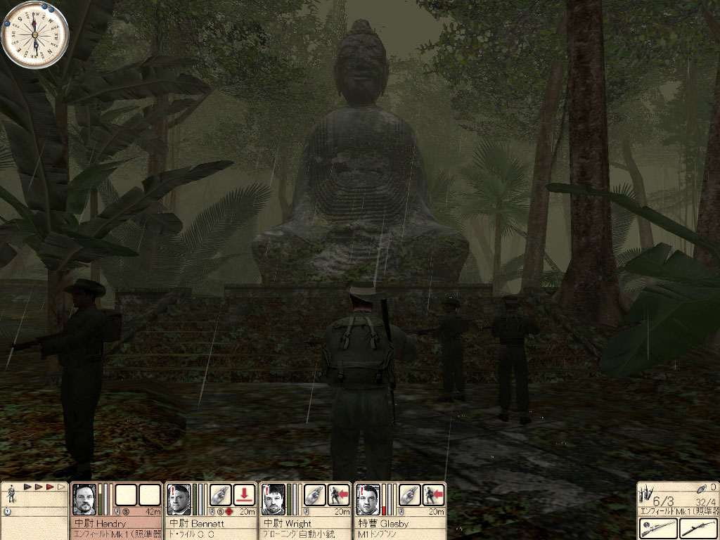 ![]() ビルマの地で,ついに日本軍と戦う日が来てしまった。なぜSASがはるかアジアの果てまで来たのかというと,日本軍に占領される前のビルマは英国領だったから(だろう)。さほど関連性のない2ミッションで構成されるキャンペーンだが,どちらも深い緑,灰色の空,湿った空気,そして掩蔽壕に設置された機関銃の嵐という共通点がある。銃は各種必要。ほかに,No.36手榴弾を大量に用意しておこう。