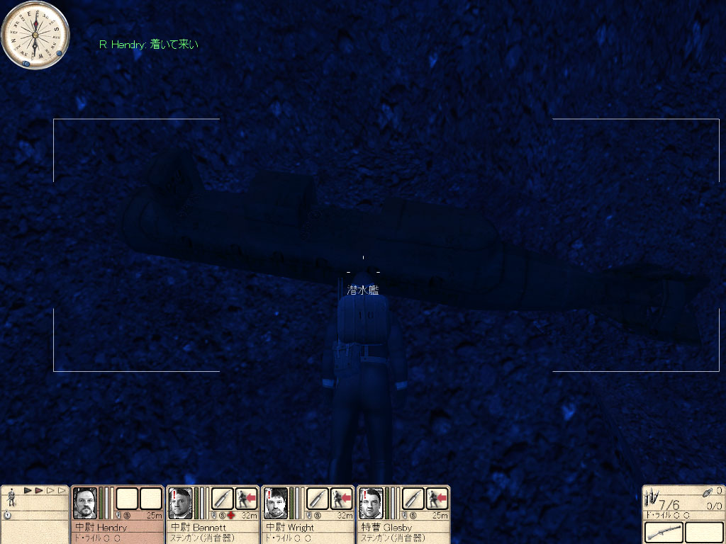 どうしても変装が好きで好きで……という人へ。艦長室の近くの部屋に,眠っている兵士がいる。こいつは殺さずに起こすと,必ず降伏するのだ。こいつを拿捕して制服を奪えば変装可能だ。ただしあらゆる銃が使えなくなるので,ナイフで敵兵を始末していくことになる。なおアクアラングさえ装備していれば,この制服のまま海中に潜っても平気らしい。寒いだろうに。