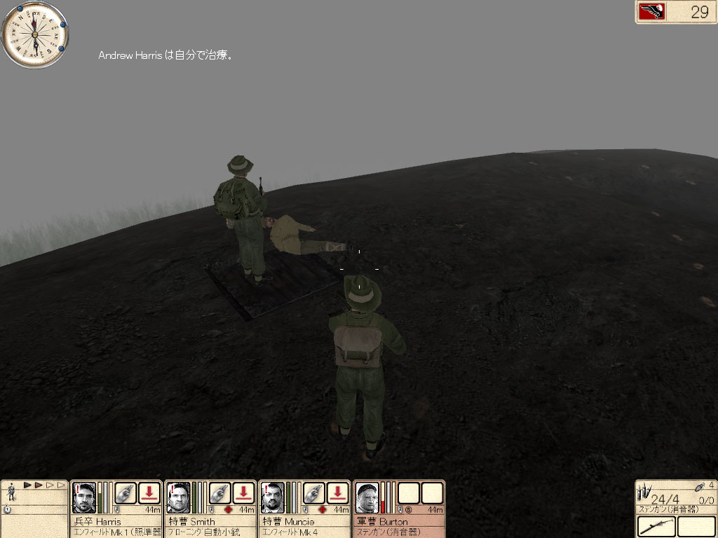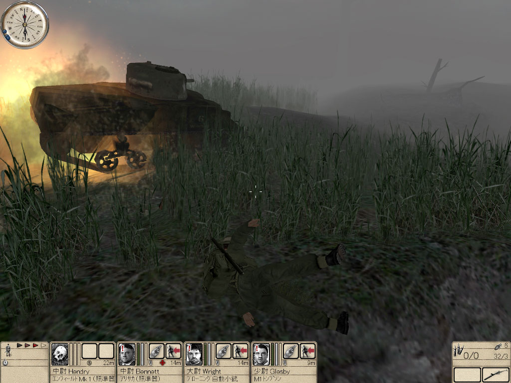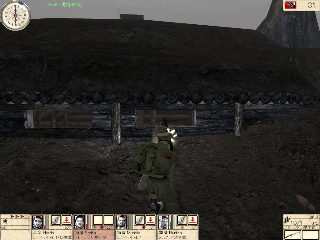 ある半島の丘の頂上に日本軍が掩蔽壕をいくつも築き,要塞化している。別のSAS部隊がここの攻略に手間取っているので,合流して攻略作戦に協力することになる。丘の頂上を目指すまでが前半,頂上の掩蔽壕(というかトンネル)を潰して回るのが後半部となる。マップ全体が霧に覆われており,視界はすこぶる悪い。背の高い草がボーボー生えている場所は,なおさらだ。「敵が見える」と言われても,プレイヤー自身には見えないことがほとんど。移動中はカメラを三人称視点にしておくことと,地図を頻繁に開くことで,視界のハンデは多少マシになるだろう。