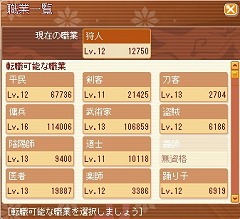 とりあえず,全職業を取得してみた。装備を揃えるだけでも大変なので,最初はあまり多く取らないほうがいいかも。