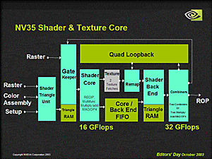 | セミナーで公開されたGeForceFX系アーキテクチャのブロック図 |