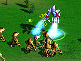なお,本作のインタフェースは一般的なRTSそのものなのだが,ゲームシステムにはRPG的なテイストが盛り込まれており,マップ上に配置されたショップで武器やアイテムを購入したり,落ちているアイテムを拾ったり,NPCを助けてアイテムをもらったりすることもある。