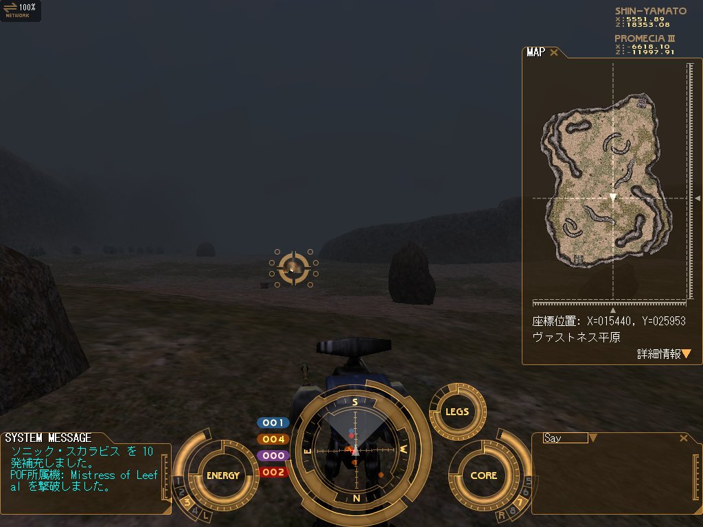 戦う気マンマンでヴァストネス平原に出撃してみたら,思いのほか敵機の数が少ない。近くにいた無限機の援護をもらいつつ前進。ゲート前はやや危険だったものの,どうにかこうにかP3に潜り込めた!