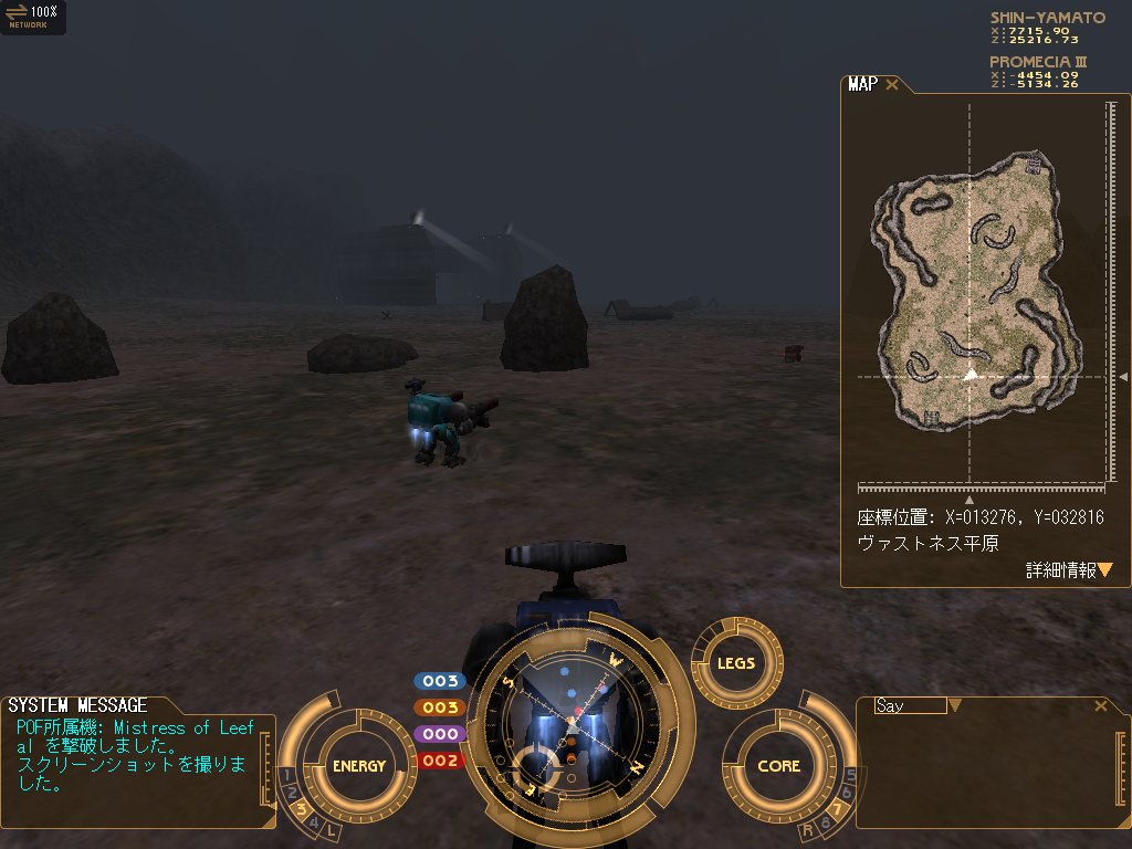 無難とされていたロンバガーノン亜針葉樹林通過を諦め,憂さ晴らしにヴァストネス平原に出撃し,憎きPOF機を探していると,なぜか敵機反応が見えない。ヴァストネス平原はPvPのメッカで,常時激しい戦闘が繰り広げられている。筆者としてもそんな激しい戦闘を期待していたのだが,敵影がまったく見当たらないのだ。これはもしやと,P3ゲート方面に直行。さすがにゲート前には数機のPOF機が存在したが,近くにいた頼もしき無限機がナイスショットを連発。筆者も二丁ライフルで援護しつつ,一瞬のスキを見てP3ゲートに潜り込んだのだ。