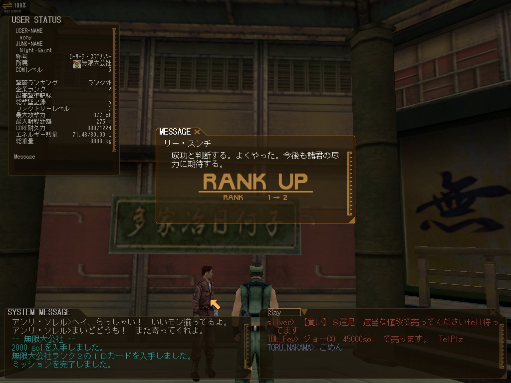 しかし,この原稿を書き始めるまさに直前,ついにP3に辿り着くことに成功! ランクアップミッション自体もびっくりするほどスムースに進み,企業ランク2に昇進できた。
