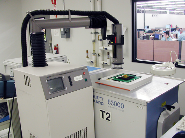 それに対して,Kingstonの採る方法は異なる。Kingstonは本社工場に専用のラボ「HP83000 Lab」を構え,ここでサンプルに対し,チップレベルの検証から行っているのだ。HP83000というのは,Hewlett Packard製の汎用LSI(IC)テスターで,日本円で1台3億円ほど。ラボの中には,それが数台設置されている。