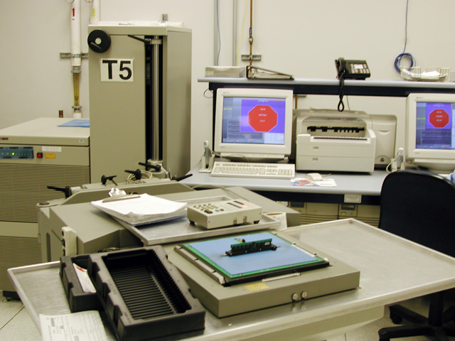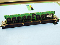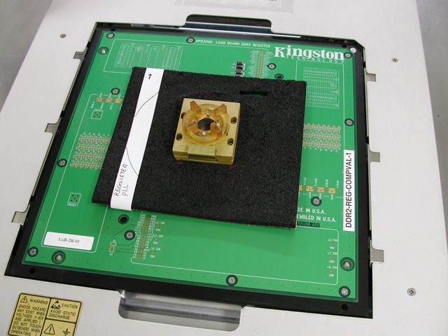 しかも,ロードボードを変更するだけで,HP83000はメモリモジュールの汎用テスターに早変わりする。基板が完成したら,基板にメモリチップを取り付けてテストするわけだ。取材時にはちょうど,サーバー向けメモリモジュールの量産前テストが行われていたのだが,なぜこういったことをするかというと,チップのときに見られた特性が,実際にメモリモジュールになってみると,微妙に変わる場合があるからである。