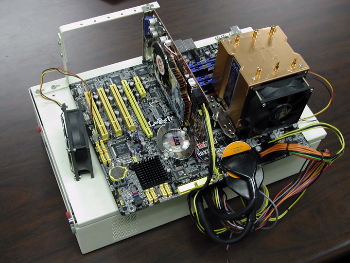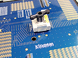どのマザーボードでどういったテストを行っているかについては,企業秘密ということで撮影できなかったが,テストルームの中には,比較的マイナーなメーカーのものも含め,各社のマザーボードがズラリと並んでいた。右の写真は,その代表として撮影が許可されたテスト用マザーボードの1枚だが,DFI製のRadeon Xpress 200P CrossFire Edition搭載マザーボード「LANPARTY UT RDX200 CF-DR」である。「なんとなくIntelのチップセットを搭載したマザーボードでテストしている」のではないわけだ。各社のさまざまなマザーボードでテストされているのである。