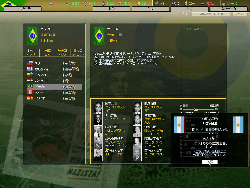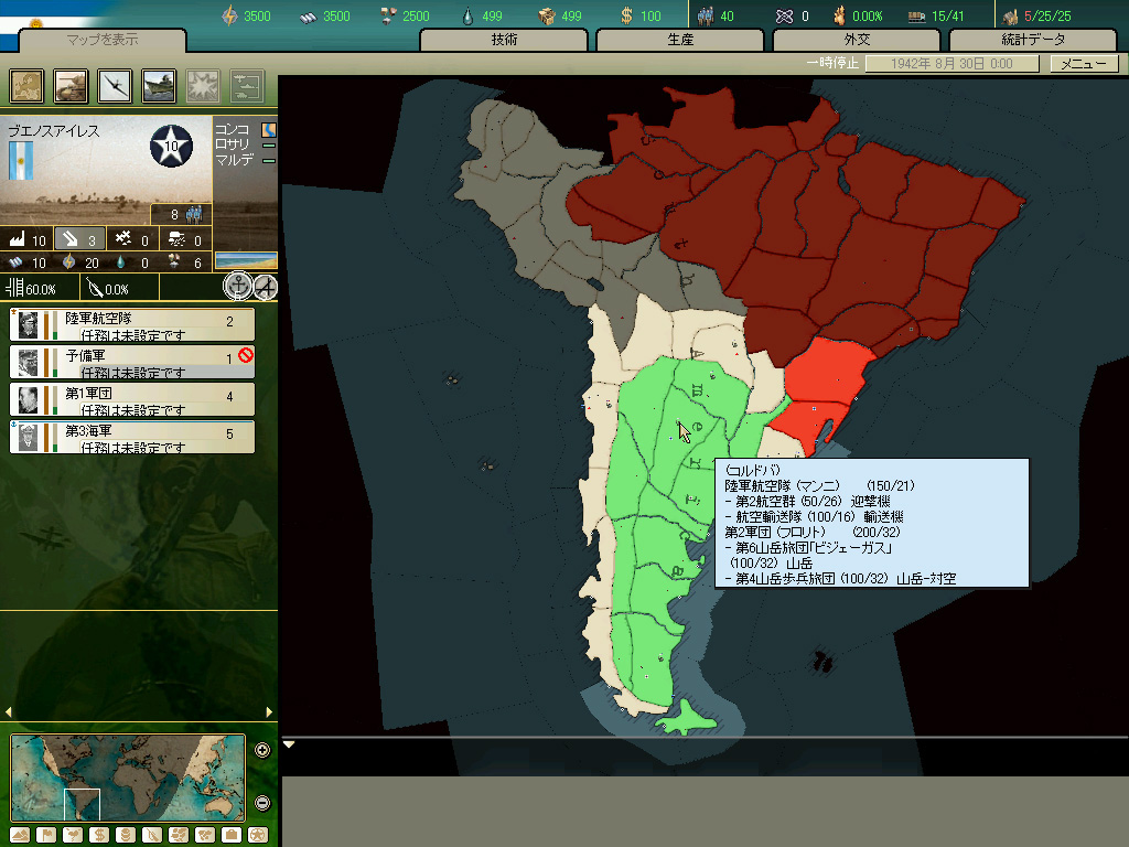 | 南米のリサーチはかなりあやしい。それはそれとして,この画面は正真正銘の仮想戦シナリオ「ラプラタ戦争」のもの |