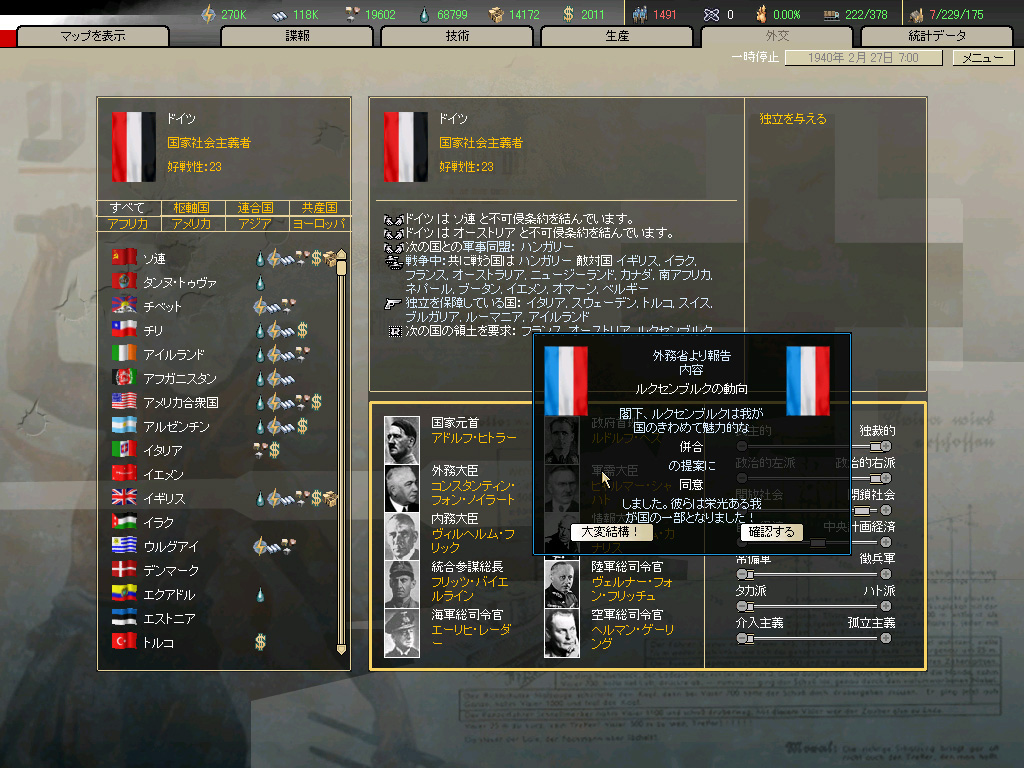 ええ。そこで自分に縛りをかけてやるのが,こういうゲームで重要な姿勢でしょうね。包囲しちゃダメとか,政体スライダーを動かしちゃダメとか。