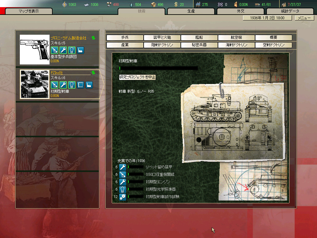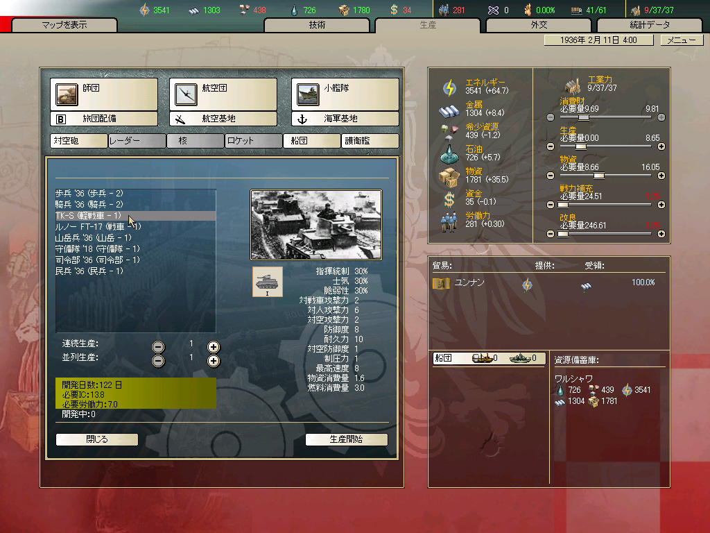 | 連載初回,ポーランドでいろいろ頑張ってみたときの画面。生き残ることすら難しい国でも,あえてプレイ可能にしてあるのがこのゲームだ |