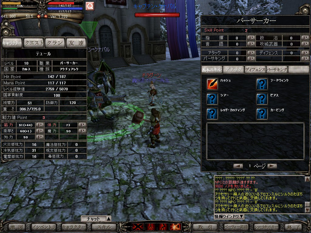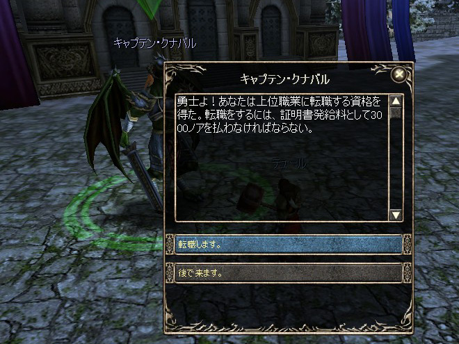 | 必要条件を満たしていれば,モラドンにいるキャプテン・クナバルが転職を許可してくれる。一次転職後には,新たに職業別スキルを習得できるようになる |