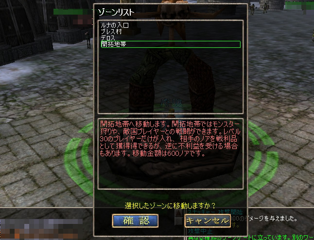 | レベル30以上なら,600ノアを支払うことで開拓地帯へ移動できる。敵国キャラクターを倒せば,その所持金の半分と国家貢献度を獲得できる |