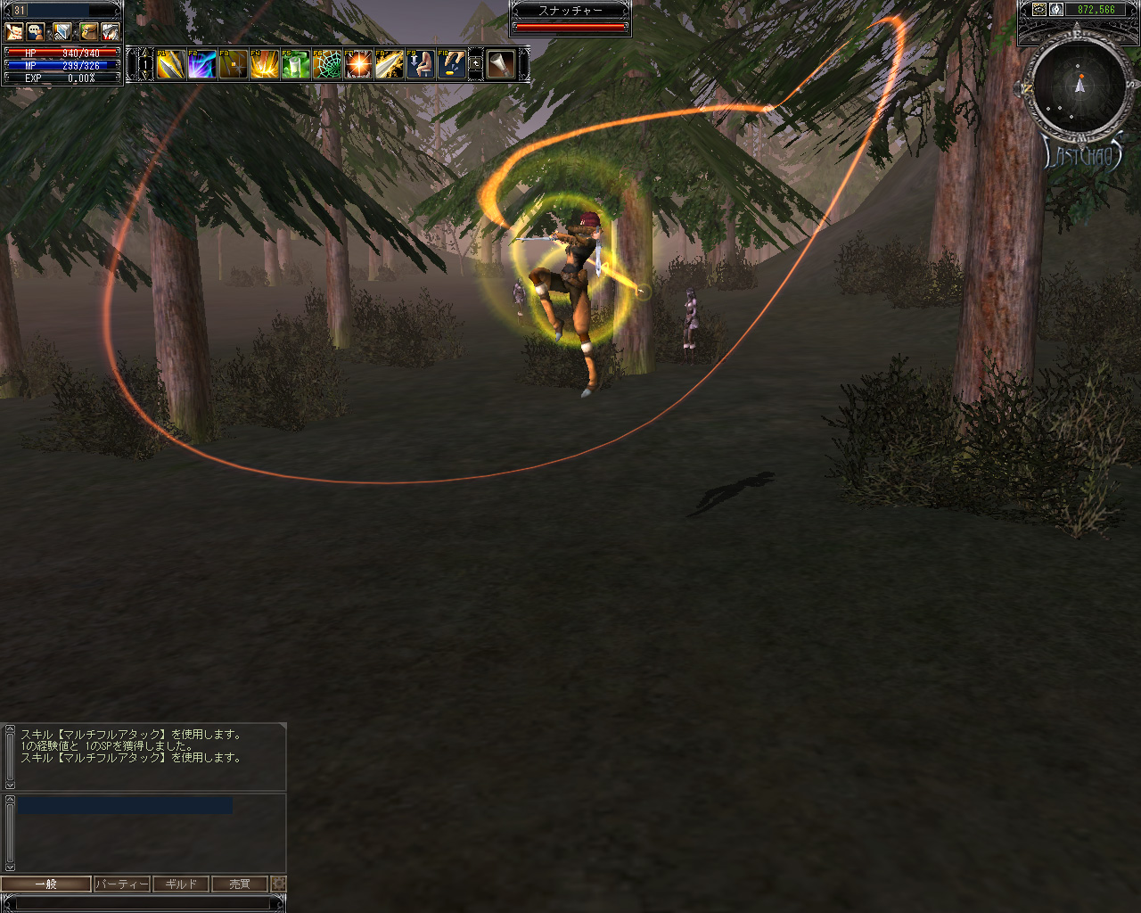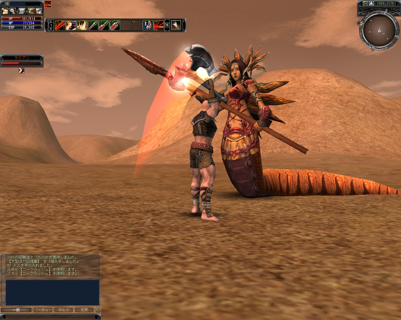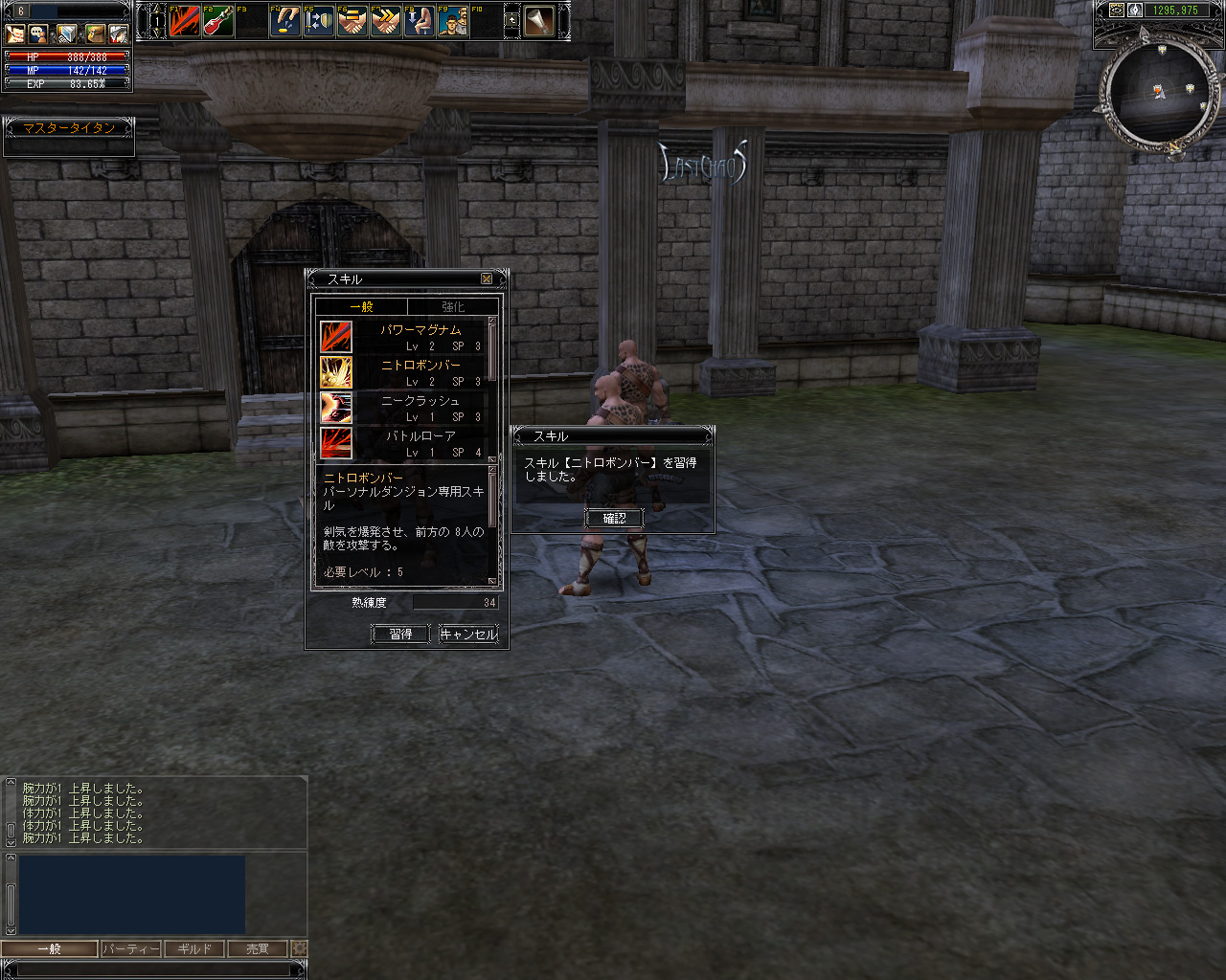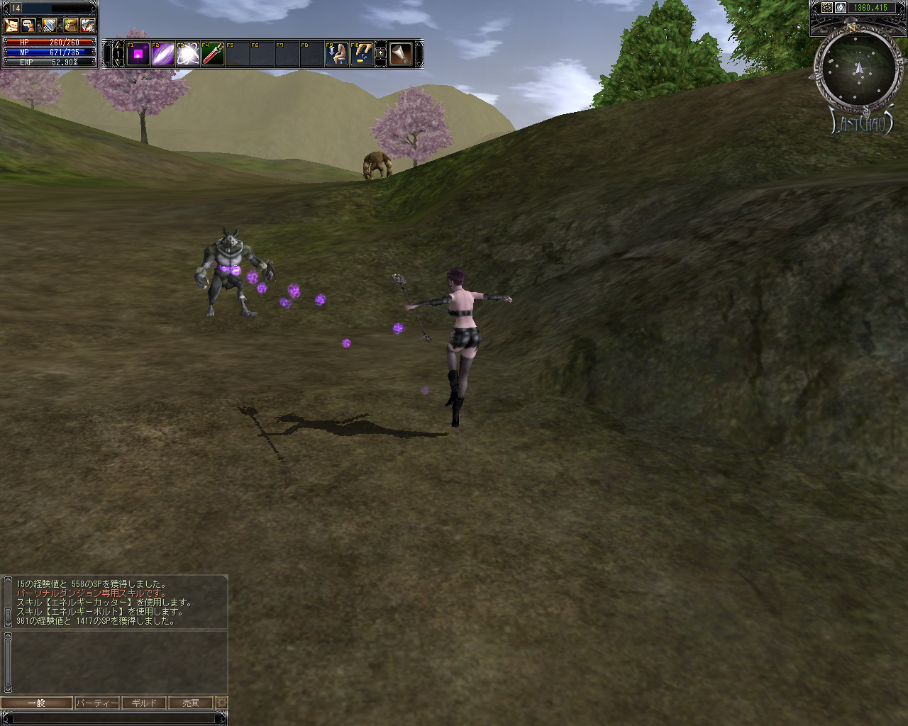 肝心の熟練度は,敵を倒したあとに経験値と一緒にもらえる「SP」と呼ばれるポイントを,一定量溜めると1増える仕組みだ。SPは,自分と敵のレベル差で得られる量が変わり,明らかに弱い敵からはあまり得られないが,自分より少し強い敵を倒すと多くもらえる。ただし,強すぎる敵からは経験値こそ多くもらえるが,SPはあまりもらえない。したがって,レベルアップを優先して強い敵と戦ってばかりいるとSPが溜まりづらく,かといって熟練度アップを優先し,SPを多く獲得できる敵ばかり倒していると,レベルアップに時間がかかってしまう。