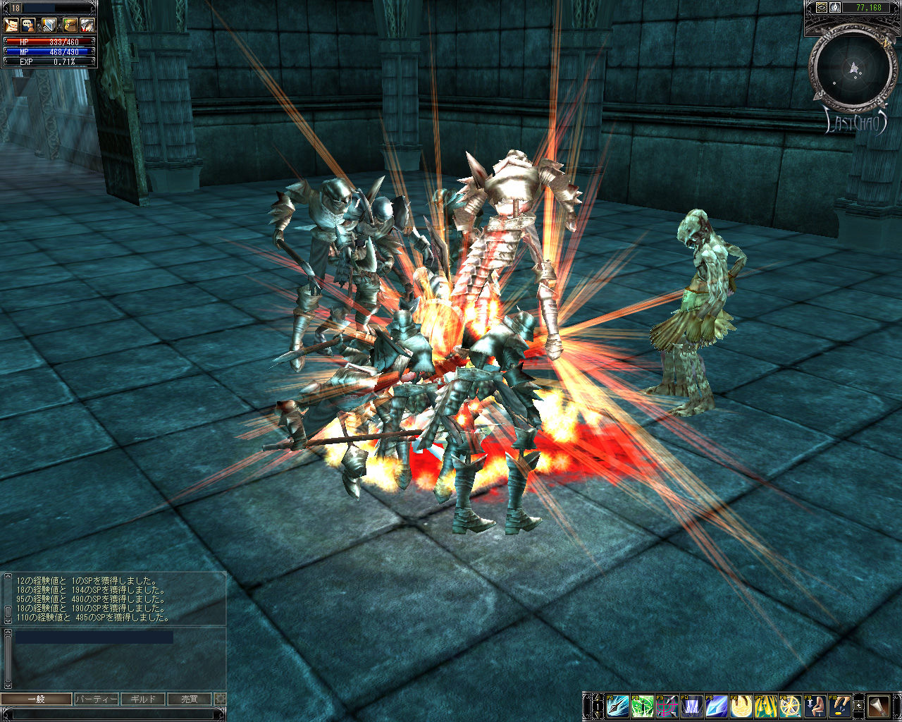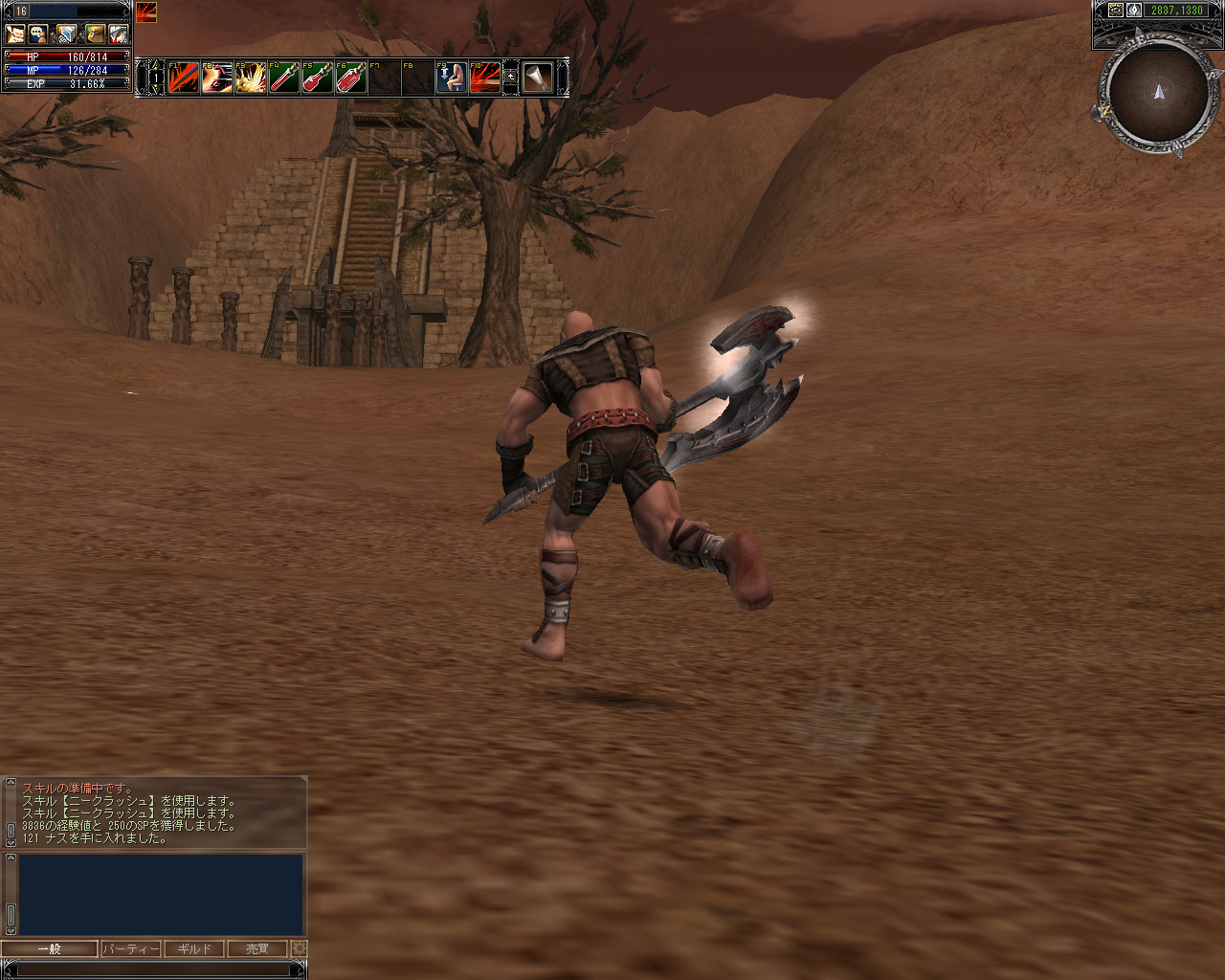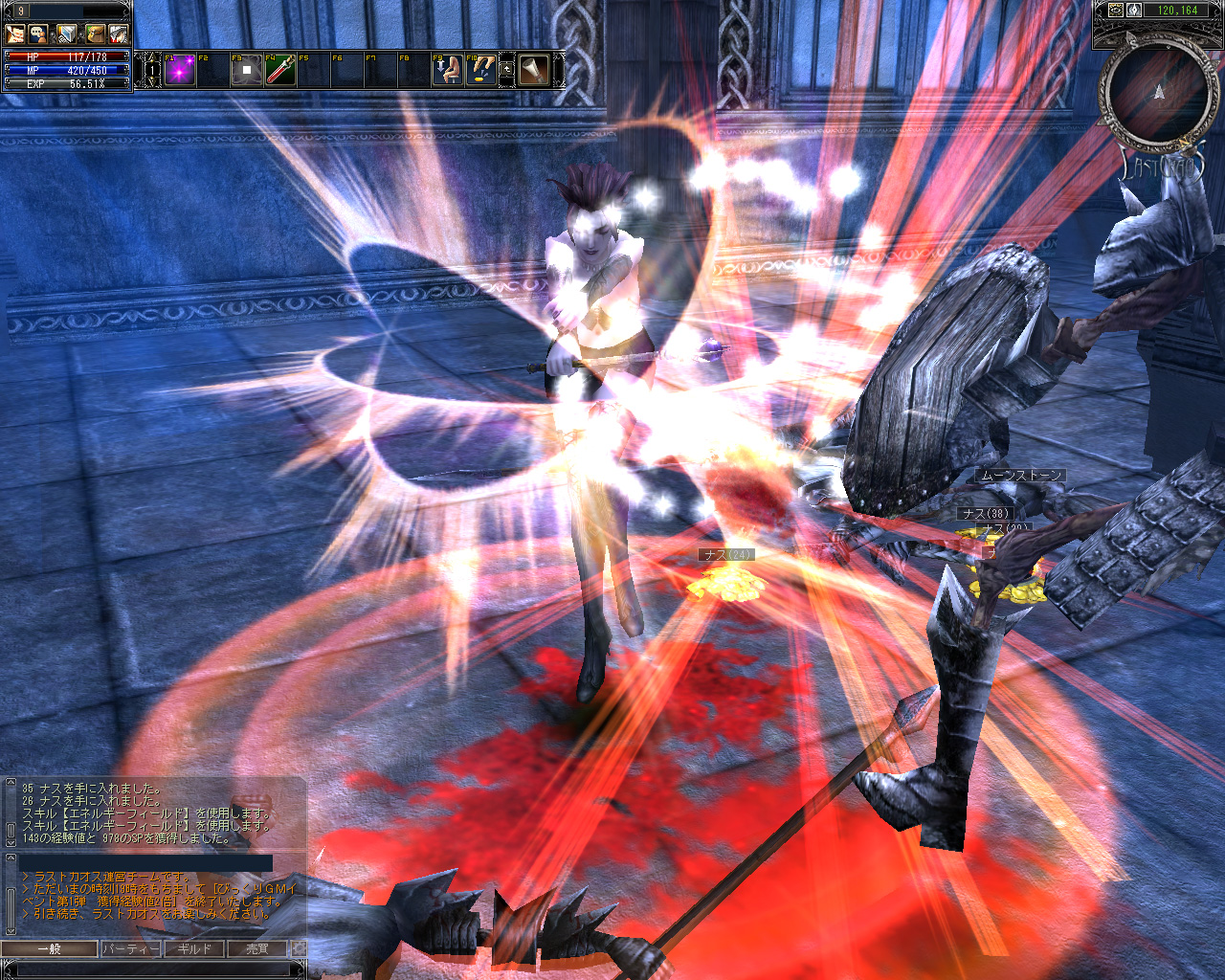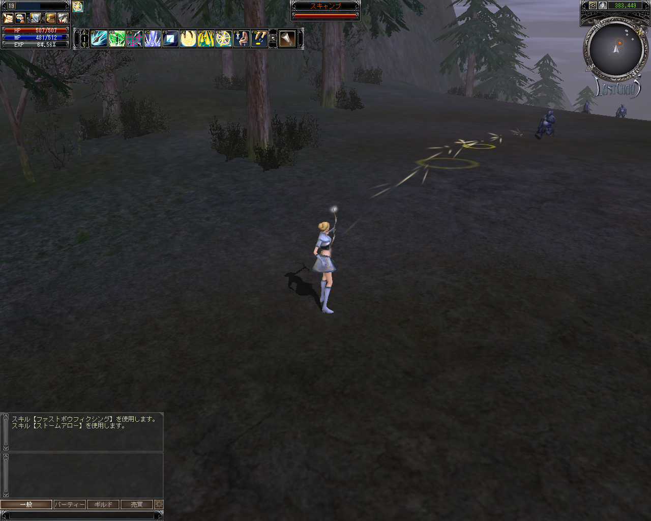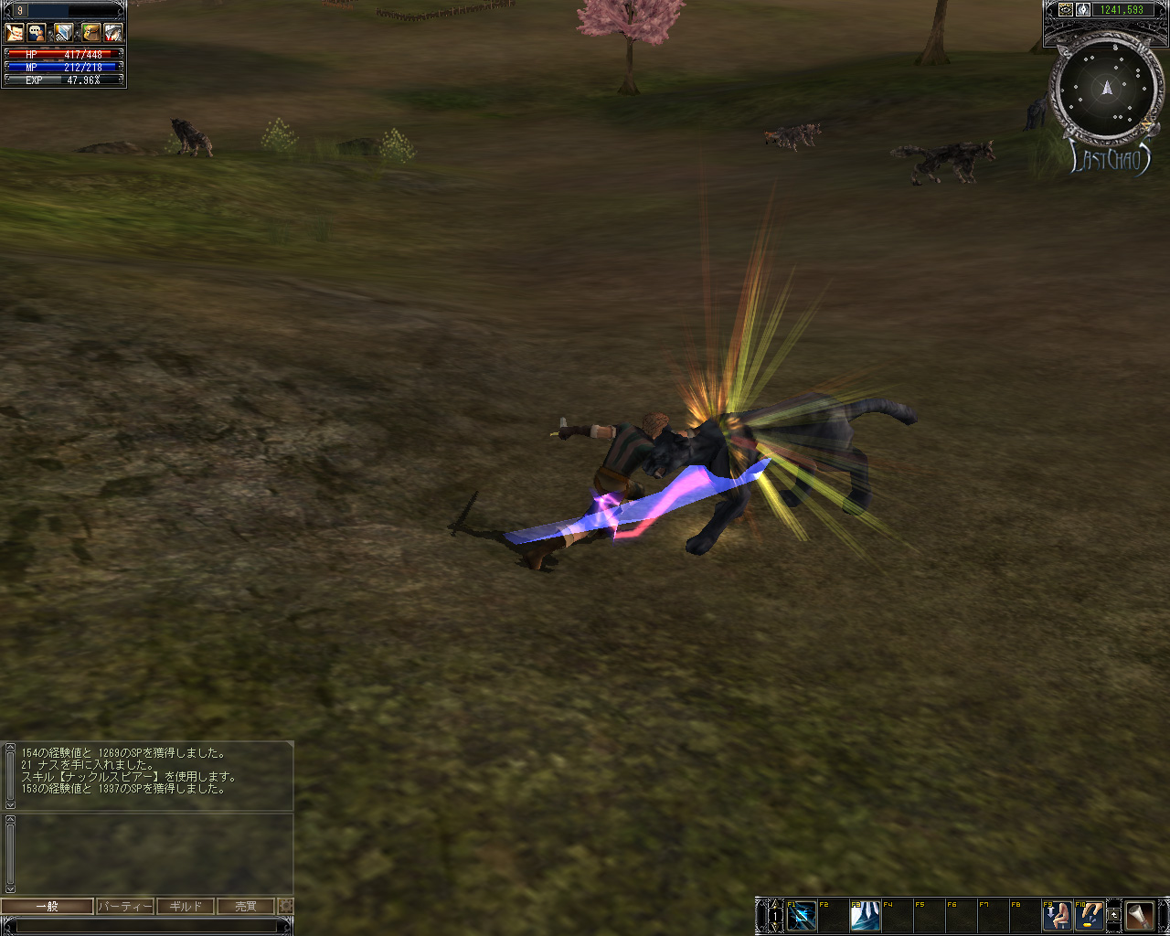 肝心の熟練度は,敵を倒したあとに経験値と一緒にもらえる「SP」と呼ばれるポイントを,一定量溜めると1増える仕組みだ。SPは,自分と敵のレベル差で得られる量が変わり,明らかに弱い敵からはあまり得られないが,自分より少し強い敵を倒すと多くもらえる。ただし,強すぎる敵からは経験値こそ多くもらえるが,SPはあまりもらえない。したがって,レベルアップを優先して強い敵と戦ってばかりいるとSPが溜まりづらく,かといって熟練度アップを優先し,SPを多く獲得できる敵ばかり倒していると,レベルアップに時間がかかってしまう。