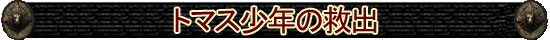 単にトマス少年を捜し出せばいいだけのクエストだが,かなり深いところにいるのでやっかいだ。彼を助けるには,まず「下水道の入り口」マップから「物乞いの集会場」を経由し,「トロールの洞穴」マップにまで行かなくてはならない。「トロールの洞穴」では,最北部でFindコマンドを使いながら,注意深く探索しよう。壁の一部が隠し扉になっており,その奥にトマス少年がいる。発見されたトマス少年は勝手に帰っていくので,港湾地区に戻ってマリソルともう一度話すとクエスト完了となる。