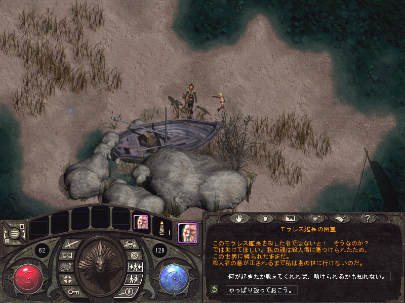 | モラレス艦長の幽霊から,「自分を殺した犯人を見つけてほしい」と頼まれる。報酬はいくばくかの金と薬,それにアイテムが一つだ |