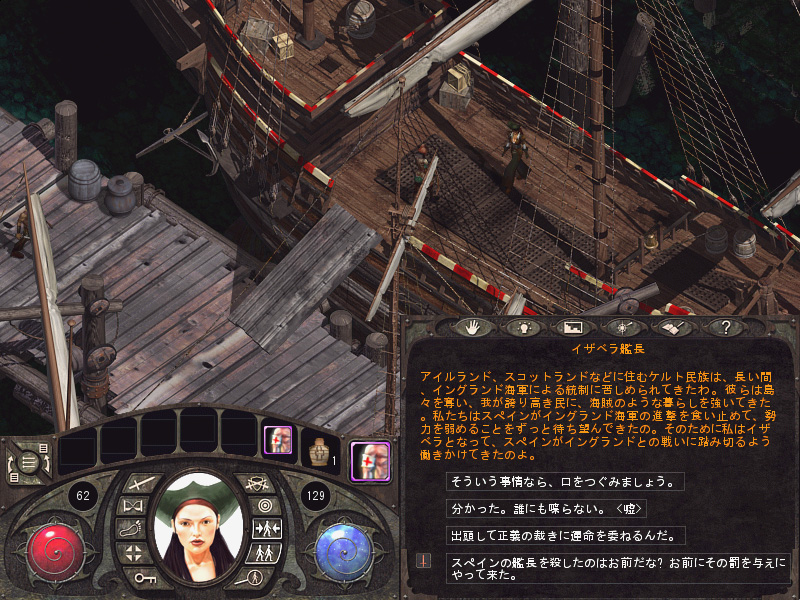 | イザベラ艦長への対応は,プレイヤーの判断次第だ。どの選択肢でも,物語の大筋には影響を与えない。好みで選択しよう |