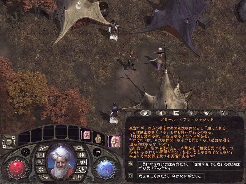 | サラディン聖兵団は,バルセロナ街門のすぐそばにテントを張っている。アミールに話しかけると,クエストを始められる。 |