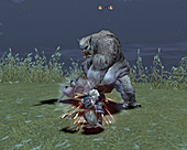 そのほか,アデン大陸全体で生態系の変化が起こっていて,グループを組んでいるモンスター郡が増えている。新しいモンスターが出現したり野営地が追加(荒地の南方にあるランクリザードマン野営地など)されていたりするので,あちらこちらを探索してみると新しい発見があるだろう。