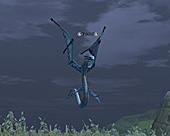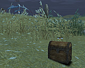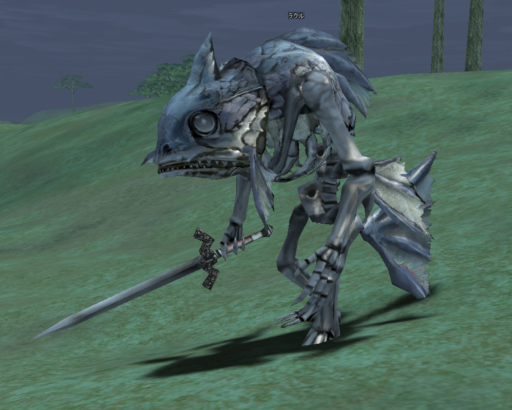 またさらに静寂の草原を南下していくと,「囁きの草原」へと繋がっていく。この囁きの草原は,"草原"と名づけられているものの湿地帯のような景観で,登場するモンスターもむき出しになった魚の骨格のような「ラクル」や,クロコダイル族の「ダイラオン」や「ファーヒィ」が中心に出現する。