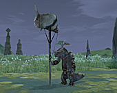 | 警備隊長のゴスタから始まるクエストで,ハイネスの資産家ハイネ家が雇った貨物が強奪されたので,その原因となるタサバリザードマンを退治してほしいという内容だ。タサバリザードマンは静寂の草原に住み着くリザードマン族。このリザードマンは,前々から旅人の脅威となっていたらしい。これもそれなりの小銭稼ぎにはなるので受けておくとお得だろう。 |