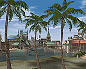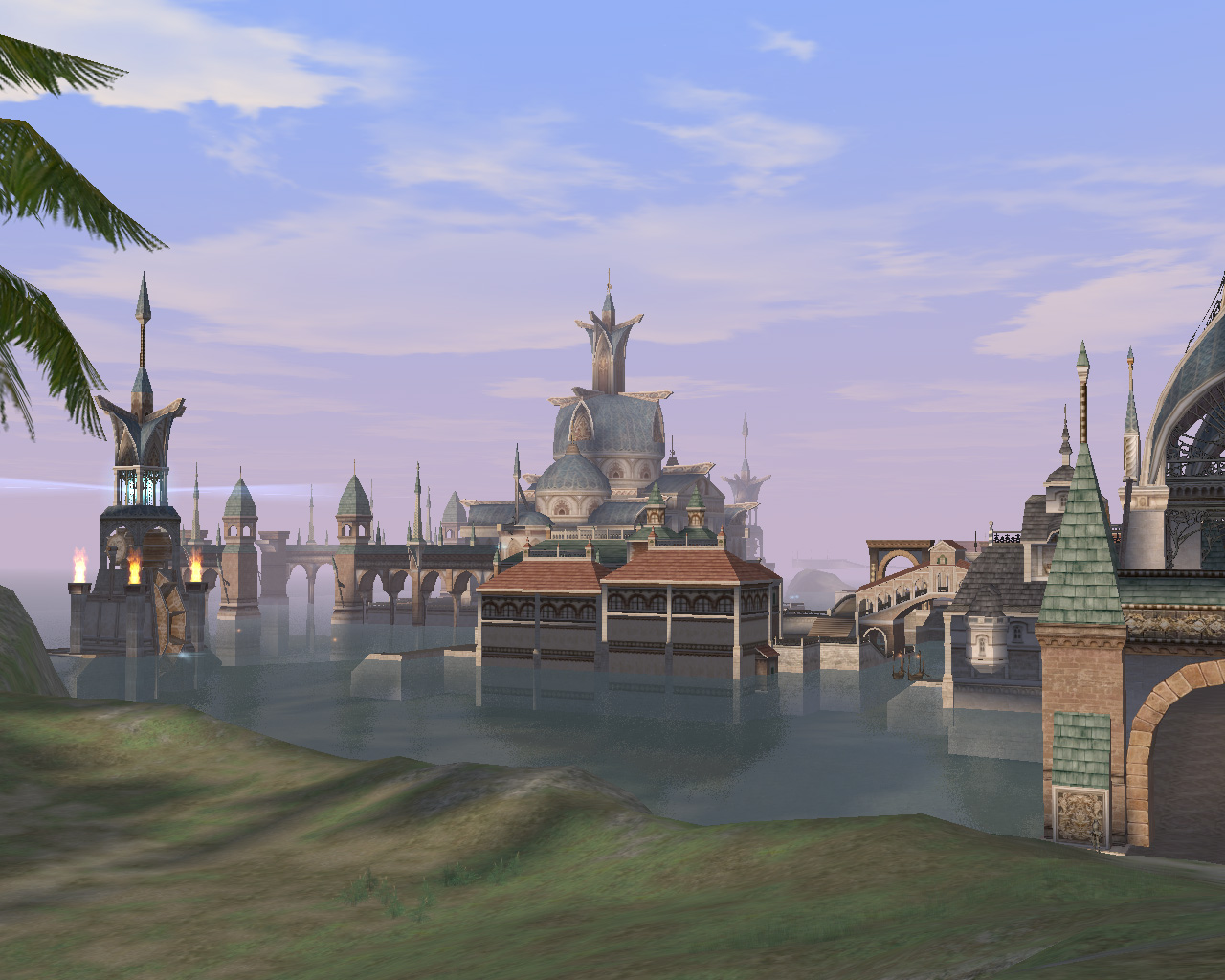 これらの二つの草原を抜けると,入り江の海上に見える美しい景観の街が眼前に迫ってくる。ここが水上都市ハイネスだ。海の上に作られた商業都市のハイネスは小さな区画で区切られており,それぞれが橋で繋がれた構造になっている。中央にある噴水を中心にして,南側には無料で利用できる遊覧船乗り場,東側にはインナドリル城へ向かう出入口や商店がある。街の中の移動は,小さい橋を渡って移動することになるため,若干移動に不便な街ではあるが,その豪華さは初めてアデンの城下町を見たときのようなインパクトがある。