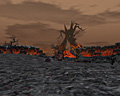 またアデン城の村の北部にある「火炎の沼」も大幅にリニューアルされた。これまで火炎の沼とは名ばかりのただ広いだけの浅い水辺だったのだが,やっと実装されたというわけだ。クロニクル2からは火口から溶岩が噴出し,溶岩流や溶岩溜りができているなどその名のとおりの厳しい環境のエリアとなる。高レベルの新しいモンスターも配置されるなど迫力の増した狩場になっている。ここにも高レベルのレイドモンスターが出現するので,ハイレベルプレイヤーの組織的な戦術を試すにはうってつけだ。