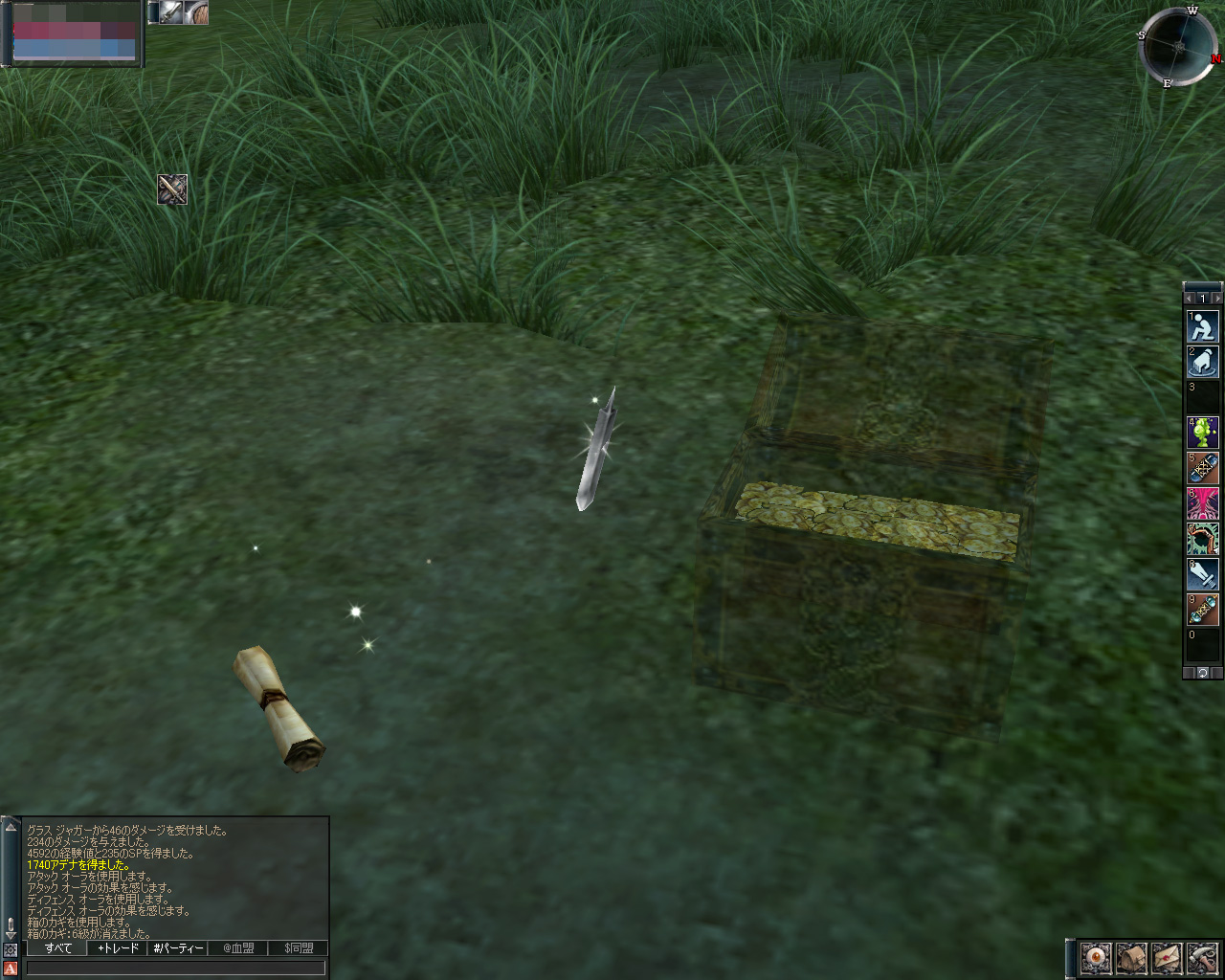 クロニクル2では,フィールドに宝箱が出現する。宝箱には,アイテムやアデナが入っている"本物の宝箱"と,"宝箱に化けたモンスター"の2種類があり,本物の宝箱の場合は開けるためのカギが必要となる。モンスターの場合は,開けようとすると攻撃してくる。名前やグラフィックは同一なので,開けるまでは見分けることは不可能だ。