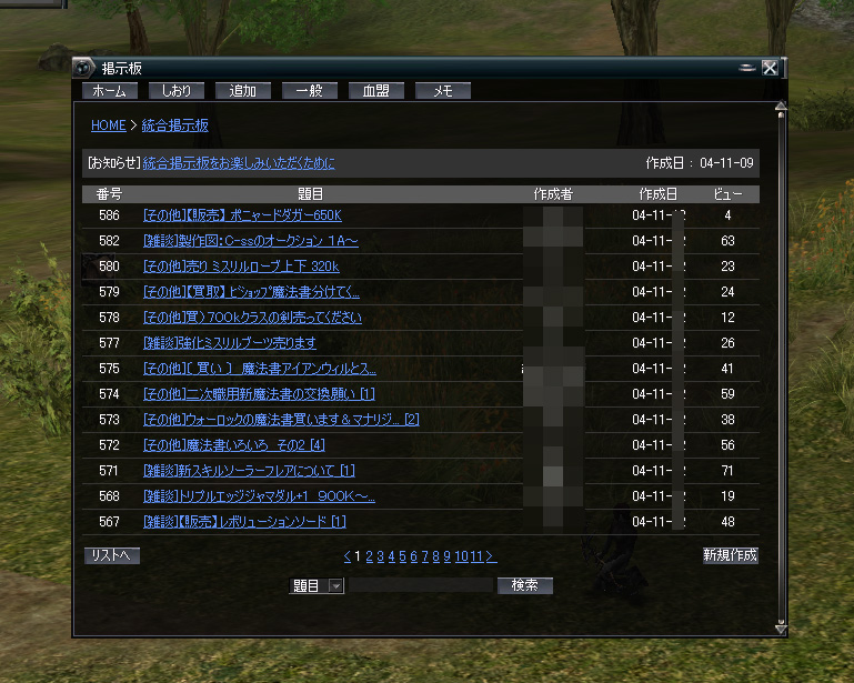 基本的にはプレイヤーならばだれでも書き込み/閲覧が出来るようになっているので,マナーを守ってうまく利用していこう。アイテムのドロップ情報や新しい狩場情報,イベント情報などの交換をゲーム内で行えるようになるのは,便利な機能だ。