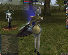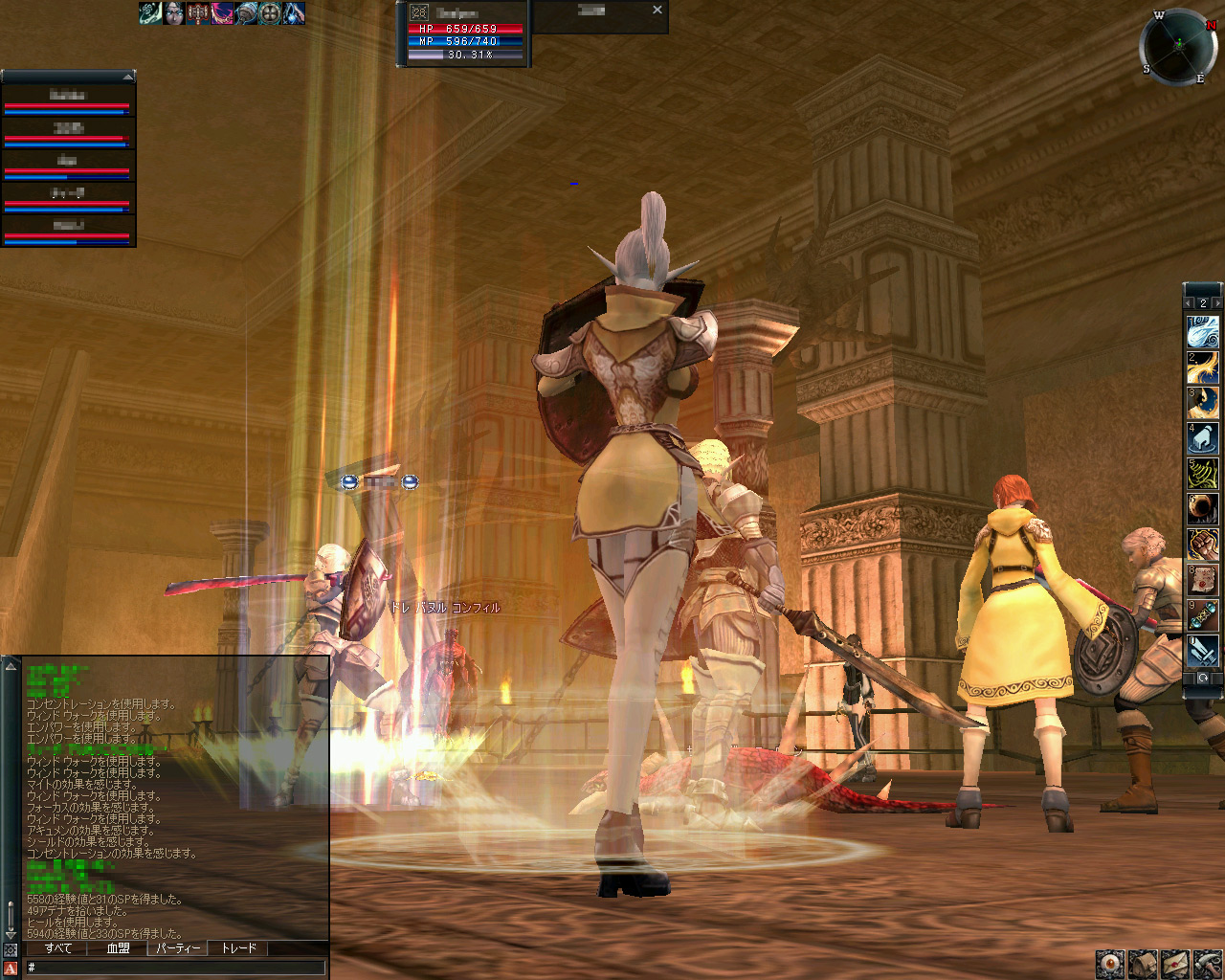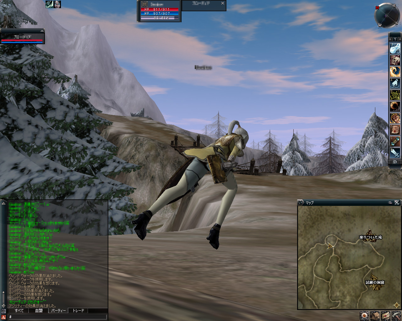 グルーディオ城の村から忘れられた神殿までは結構長い距離があるけど,いつものウィンド ウォークでさくさくと走っていく。というか,リネージュIIではメイジタイプよりもファイタータイプの方が移動速度が速く,1次転職後ではさらに足が速くなるクラス(スカウトなど)もあるらしい。なので,パーティメンバー全員にウィンド