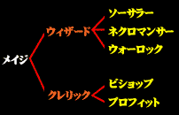 ドワーフを除く4種族(ヒューマン,エルフ,ダークエルフ,オーク)は,ファイタータイプとメイジタイプの2系統の職業(初期職業)に就くことができる。そしてキャラクターが成長してレベル20になると,さらに細かい特殊な職業へとジョブチェンジができるようになる。